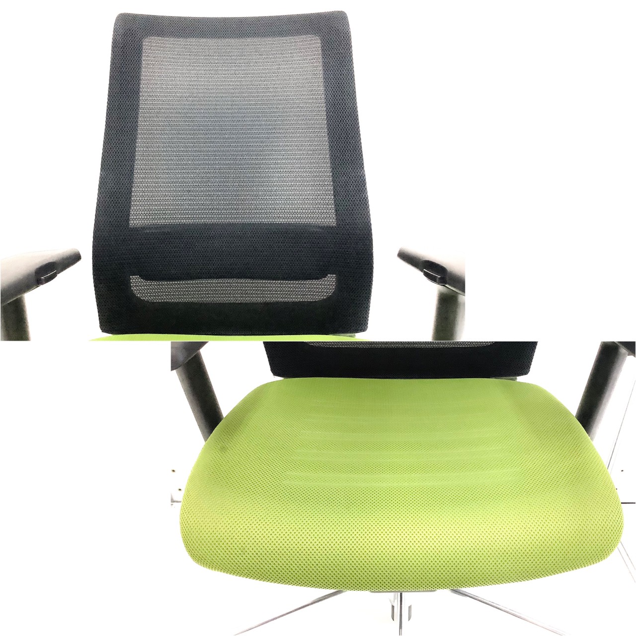 空気の徹スリットを設置したウレタン座面にラッセルクロスを採用しており