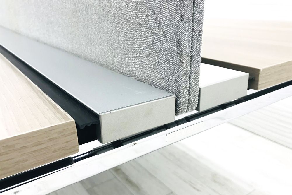 フリーアドレスなので、業務やチーム別、又はその日によって席を囲めるので、