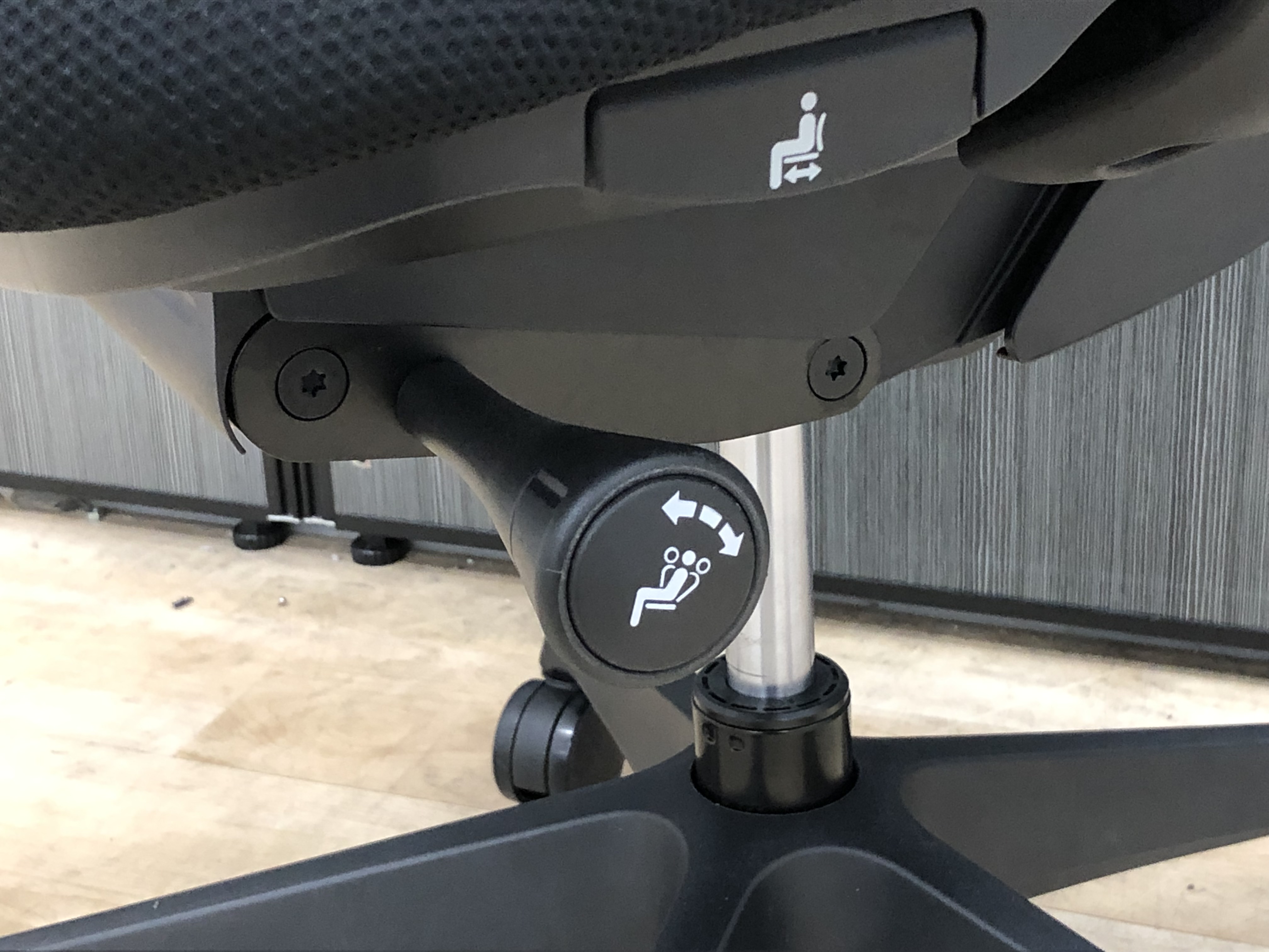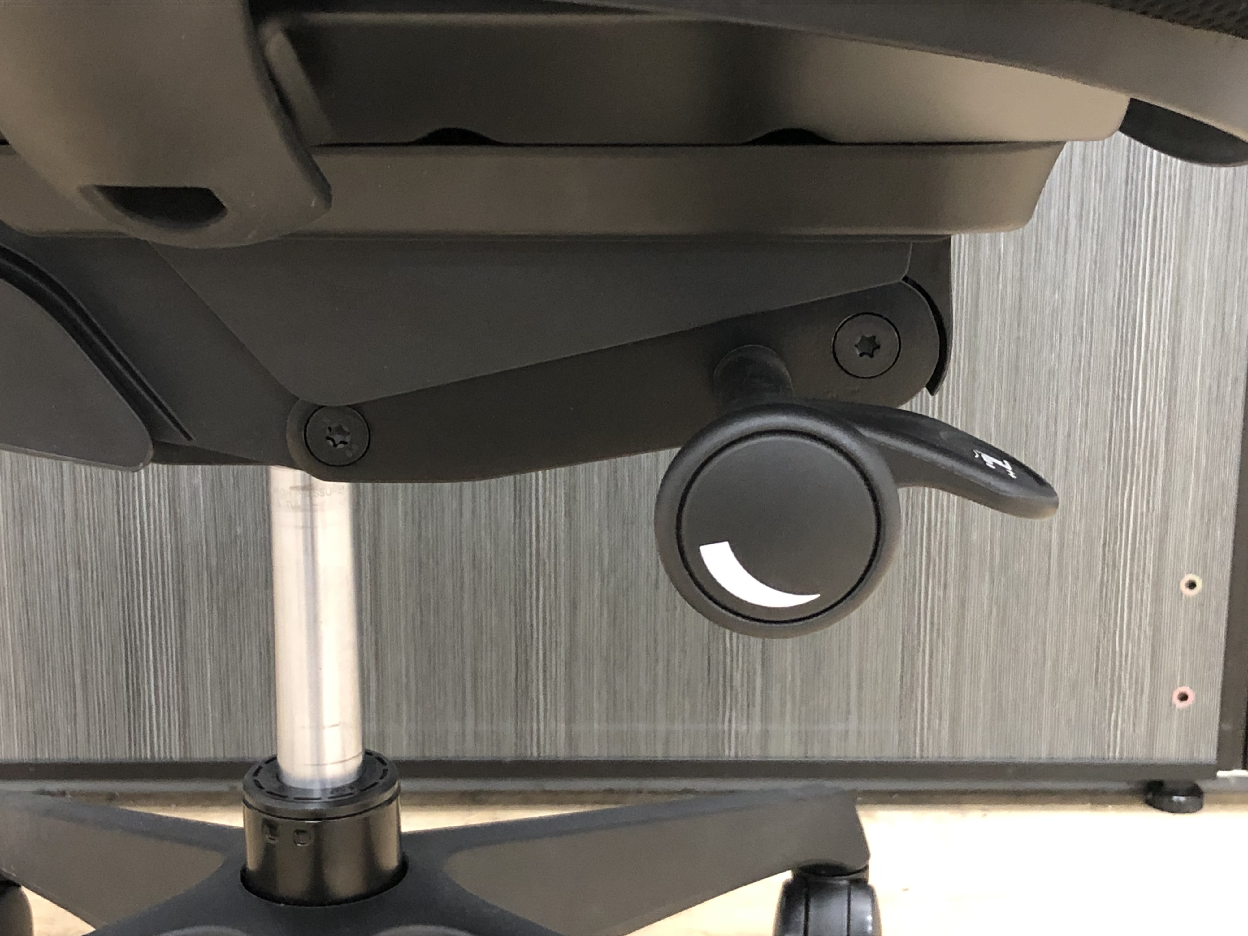 - 座面右下のダイヤル操作で、リクライニングの強弱調整が行えます。これまでのダイヤル式よりも、少ない回転数で、最弱?最強の調整が可能です。
