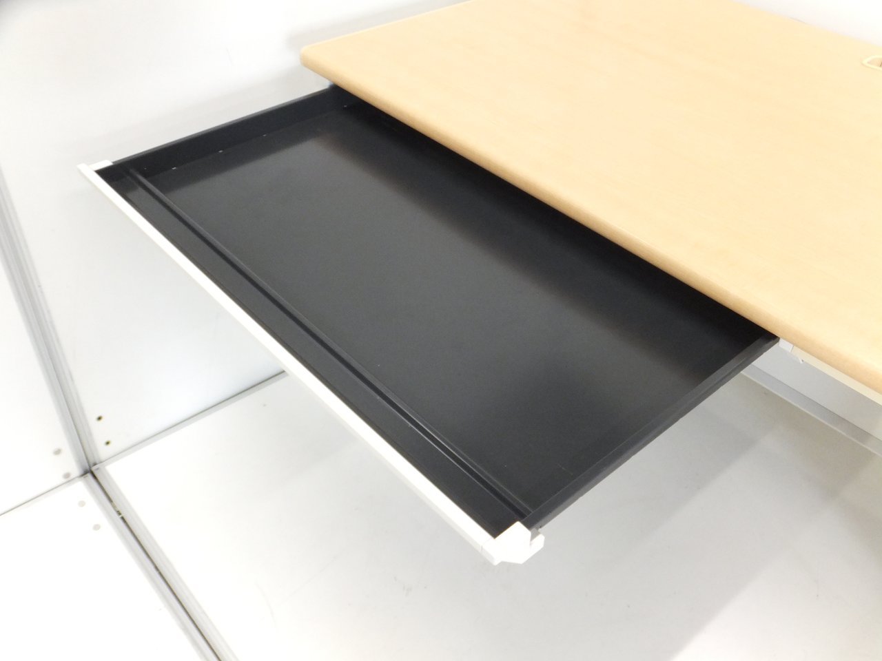 【ベーシックな使いやすさ・ローコストの引き出し付きデスク!】■プラス (PLUS) 製 フラットラインシリーズ 平デスク W1200mm 引き出し付(日焼け有) ■本体:ホワイト 天板:木目ナチュラル(メープル調) 【弊社使用欄:A01040783/A01035962】