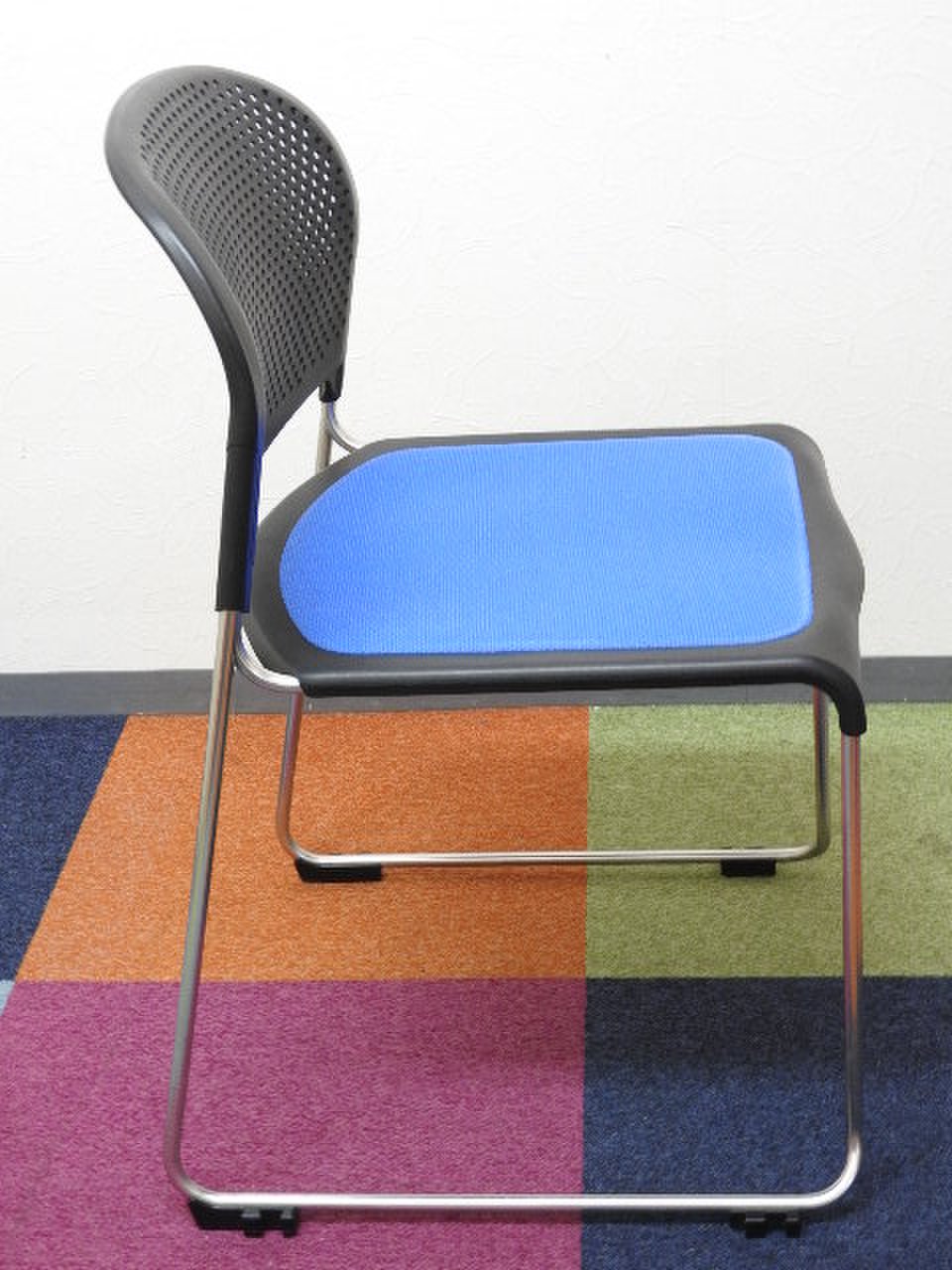 【使い勝手の良い軽量タイプ!】■オカムラ製 スタッキングチェア ブルー ■在庫限りのお買い得品!【おつとめ品】【M】- 川崎店