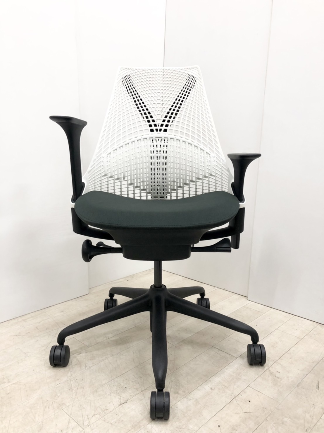 【可動肘】ハーマンミラー/セイル/背もたれホワイト/座面ダークグリーン- オフィスチェア店