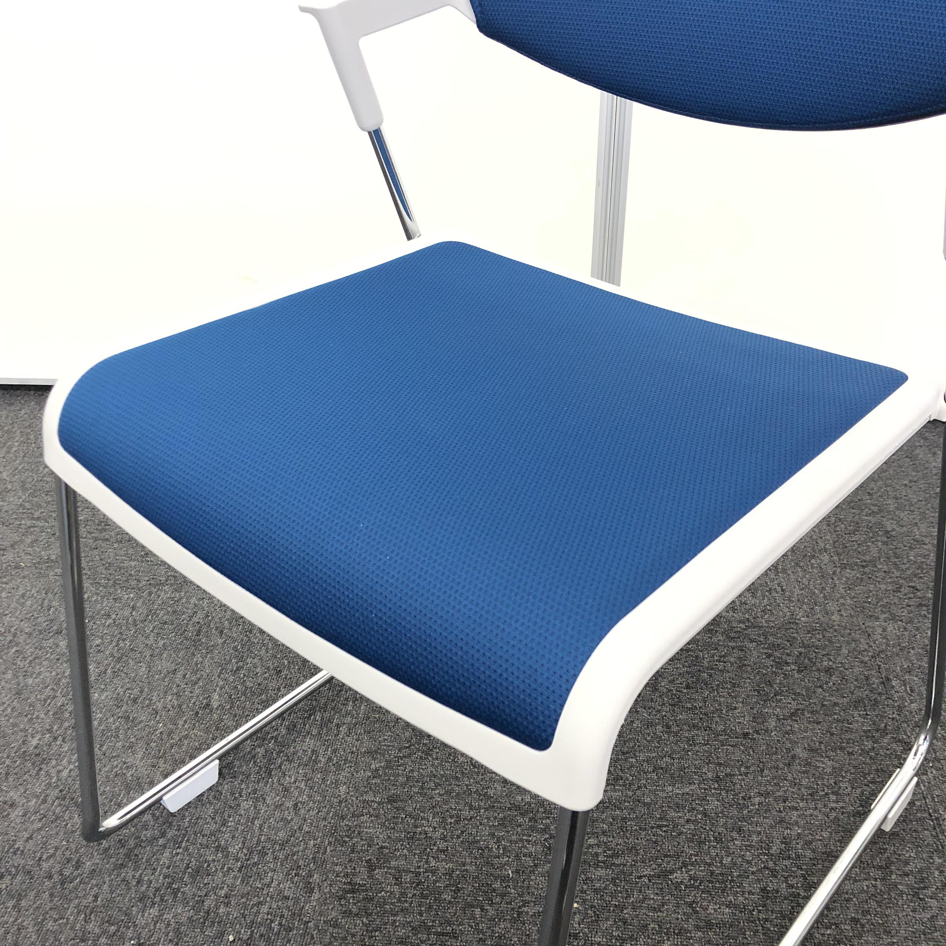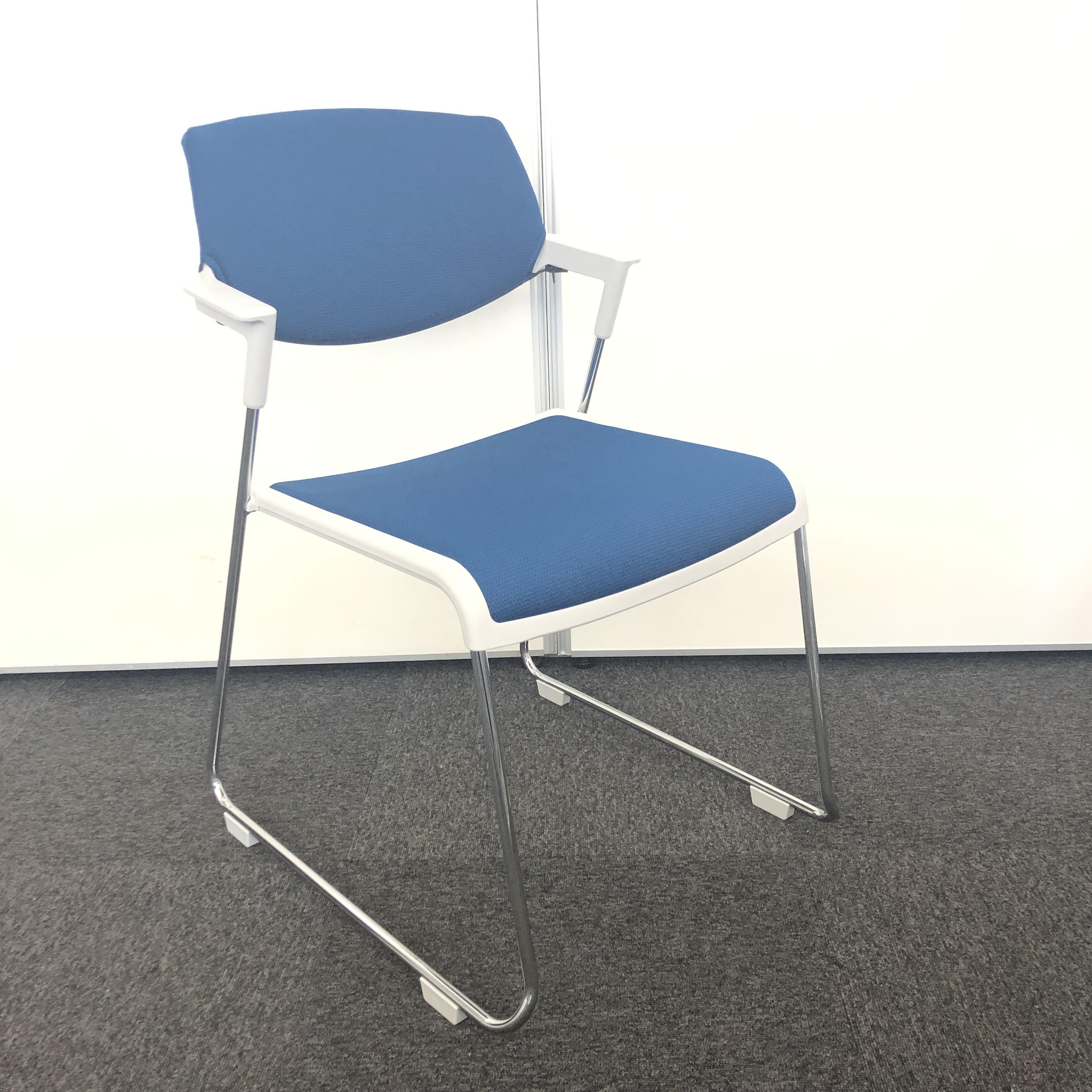 【肘一体型のシェルが身体への負担を軽減!】■コクヨ(KOKUYO)製 サティオ(Satio)シリーズ 肘付 スタッキングチェア 会議用 ■背カバータイプ ■ブルー×ブラックシェル