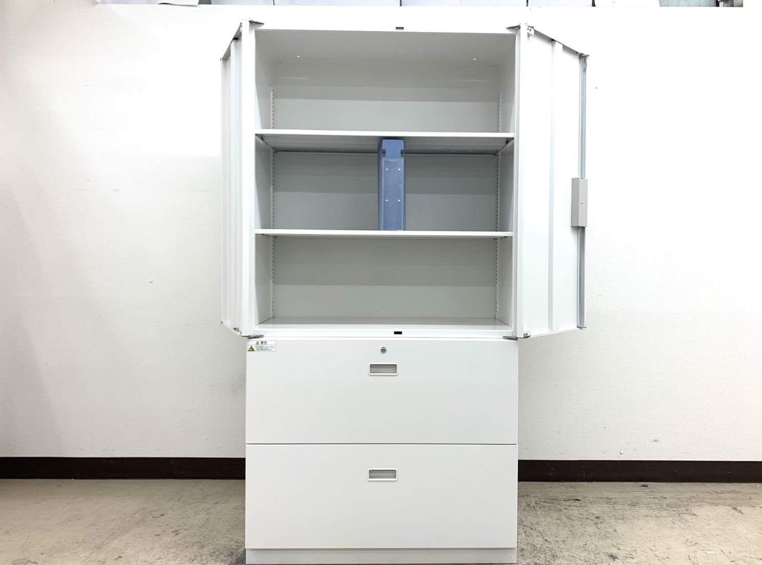 - 一部不具合ありそ引出の開閉不可、施錠不可、棚板無しといったの書庫の本来の効用を果たすための機能以外の一部が使用不可(例、扉、引出の開閉がしづらいなどがある。 )