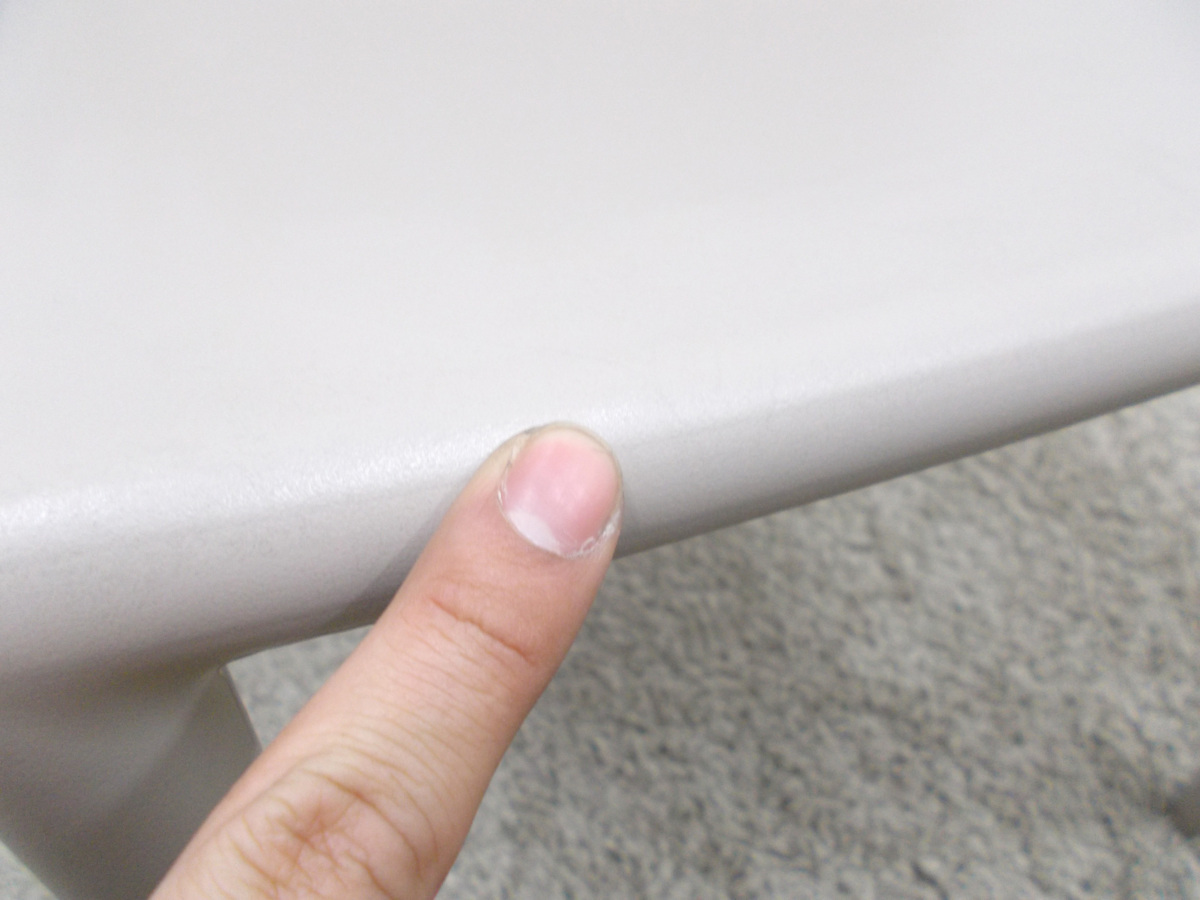 - 目立つ箇所あり傷・破れ・ほつれ・へたり・しわが多数または深い傷・破れ・ほつれ・へたり・しわが一部ある。※座面・背もたれ、シェル、脚部等にある。