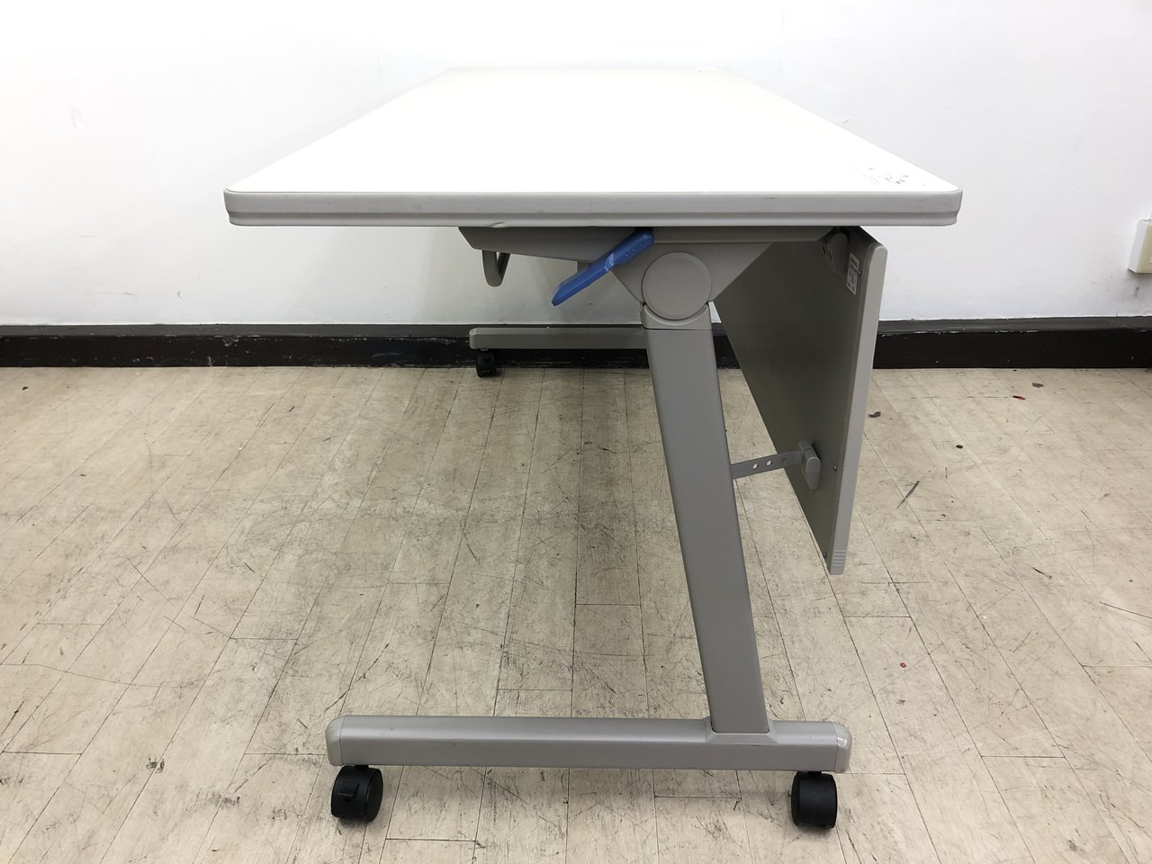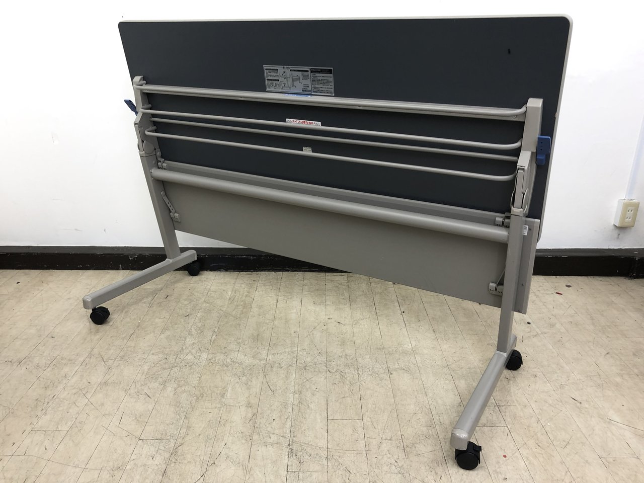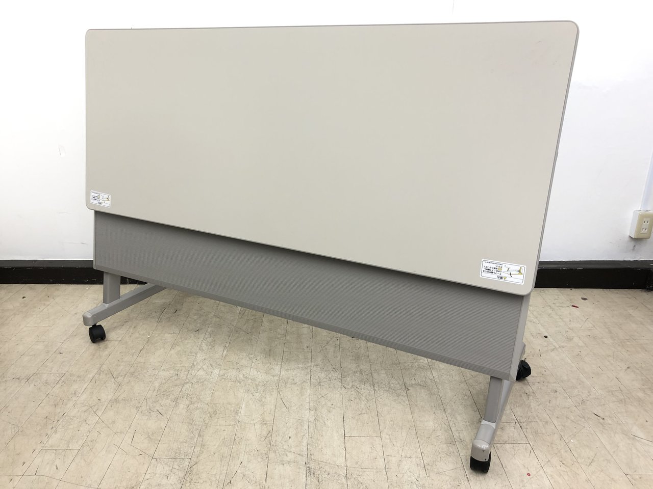 - 一部不具合あり天板歪み、アジャスター無し、キャスター使用不可ようなそのテーブルの本来の効用を果たすための機能以外の一部が使用不可な状態。(例、キャスターロッ ク機能使用不可、棚板無し等がある。)