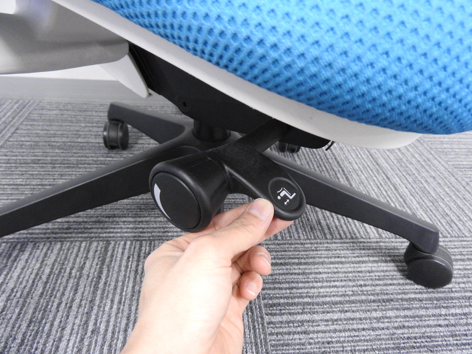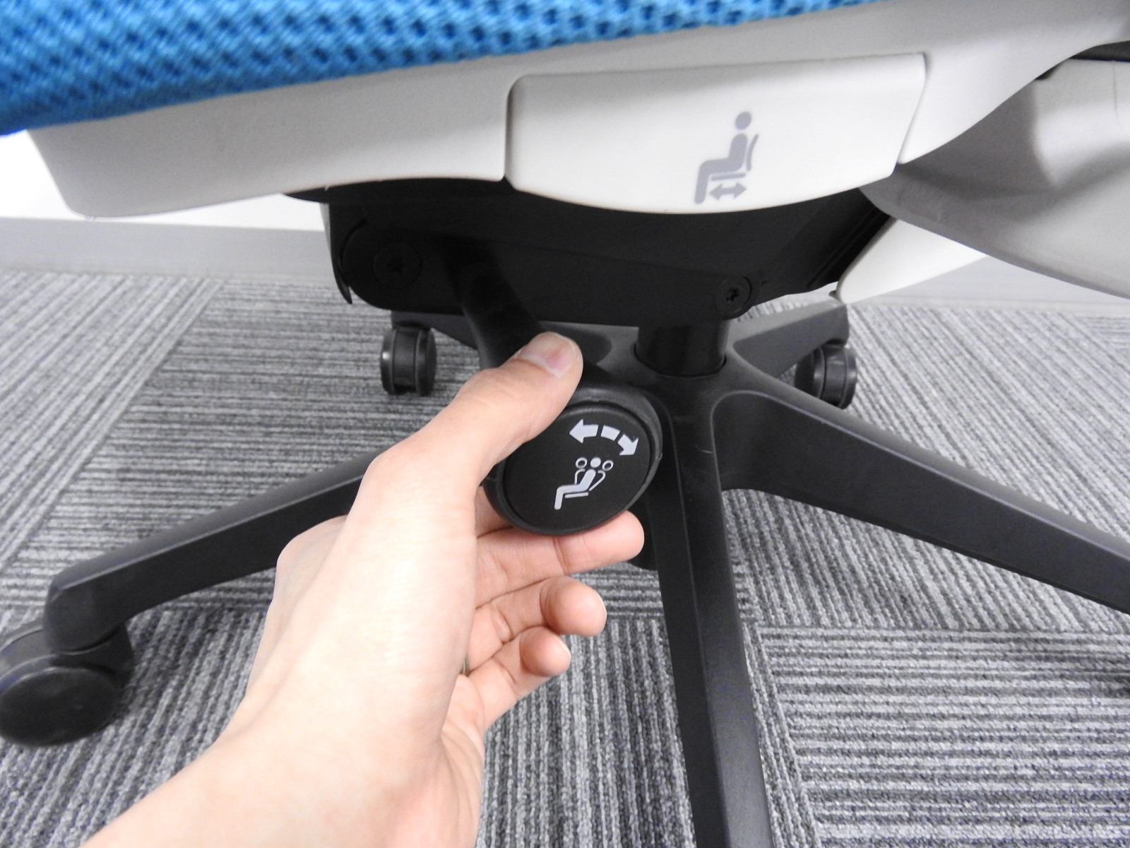 - 座面右下のダイヤル操作で、リクライニングの強弱調整が行えます。これまでのダイヤル式よりも、少ない回転数で、最弱?最強の調整が可能です。
