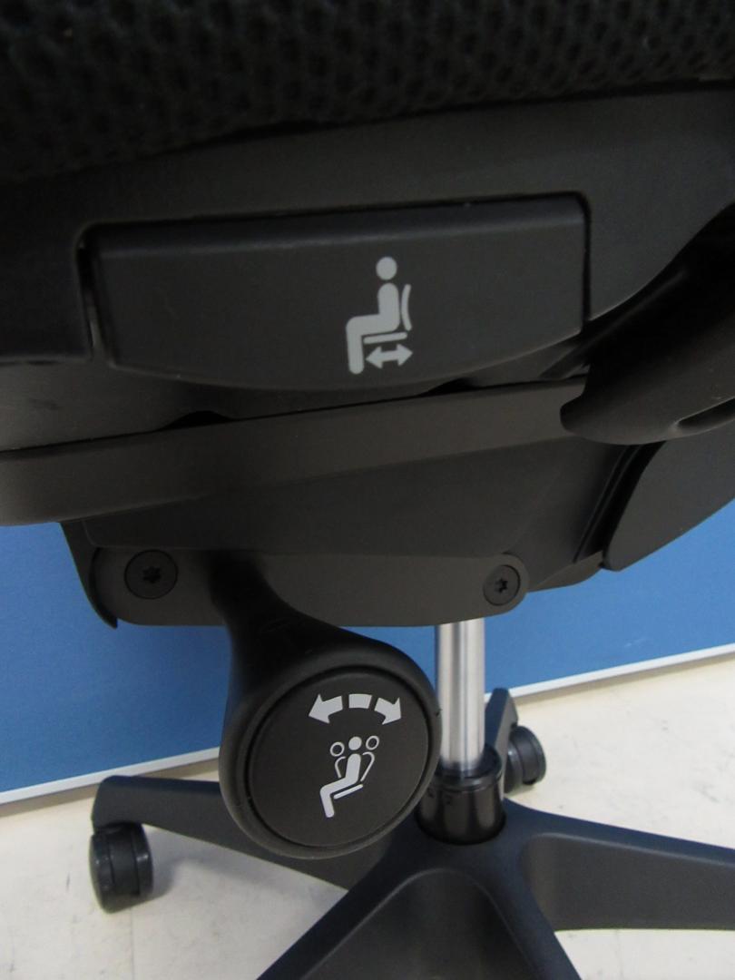 - 座面右下のダイヤル操作で、リクライニングの強弱調整が行えます。これまでのダイヤル式よりも、少ない回転数で、最弱?最強の調整が可能です。
