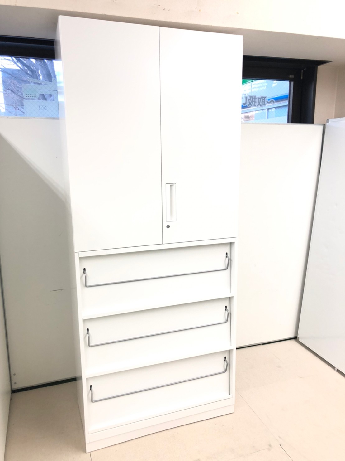 【両開き書庫とクリスタルトレイキャビネットの上下書庫セットの入荷です】 ■コクヨ/エディア/ホワイト 両開き+クリスタルトレー 深型3列11段 計33段