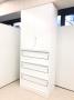 - 両開きタイプは扉が180度開き、通路の邪魔になりません。ラテラルタイプは引出しが限界まで出せ、出し入れ楽々。