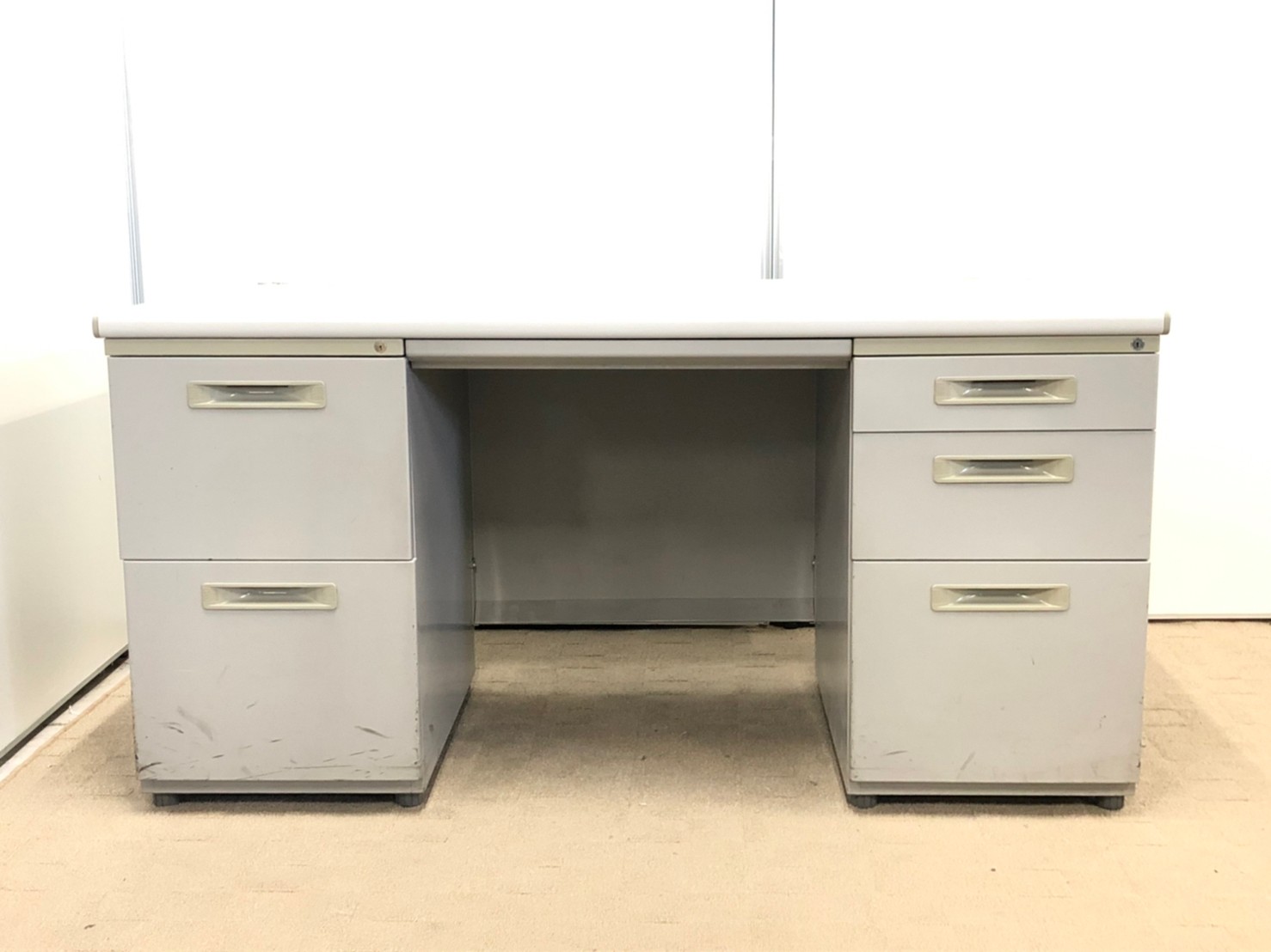 【限定1台!】グレー色の両袖机!!手元で書類が管理可能!- 立川・八王子店