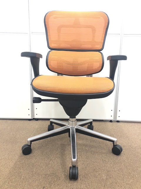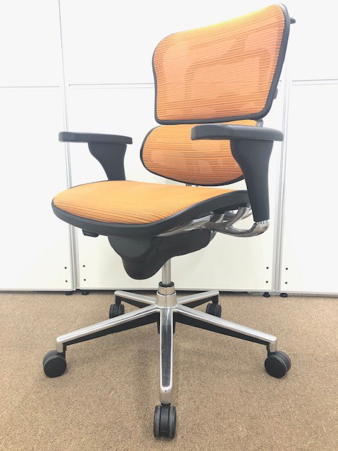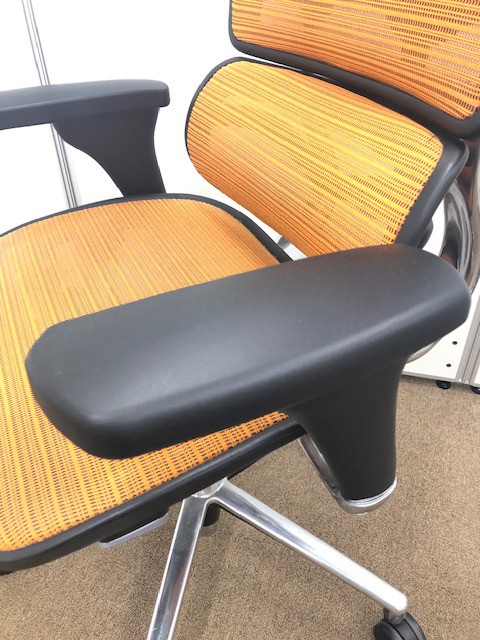 エルゴヒューマンチェア|関家具|オレンジ|座面・背面メッシュ|稼働肘|ハンガーオプション付き- 名古屋本店