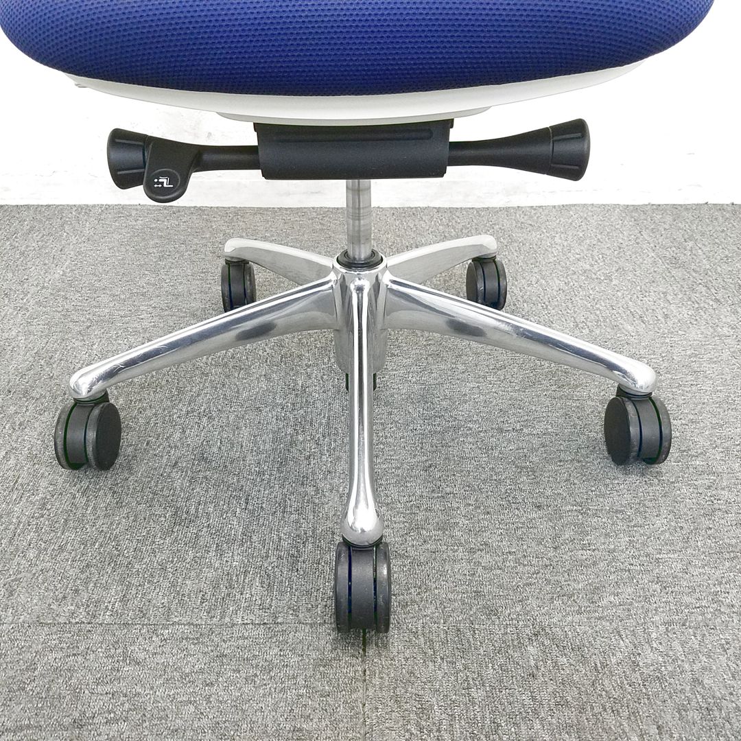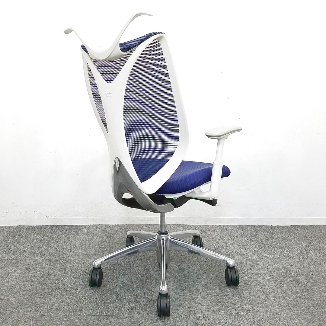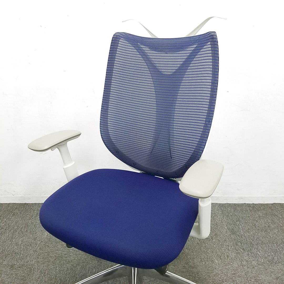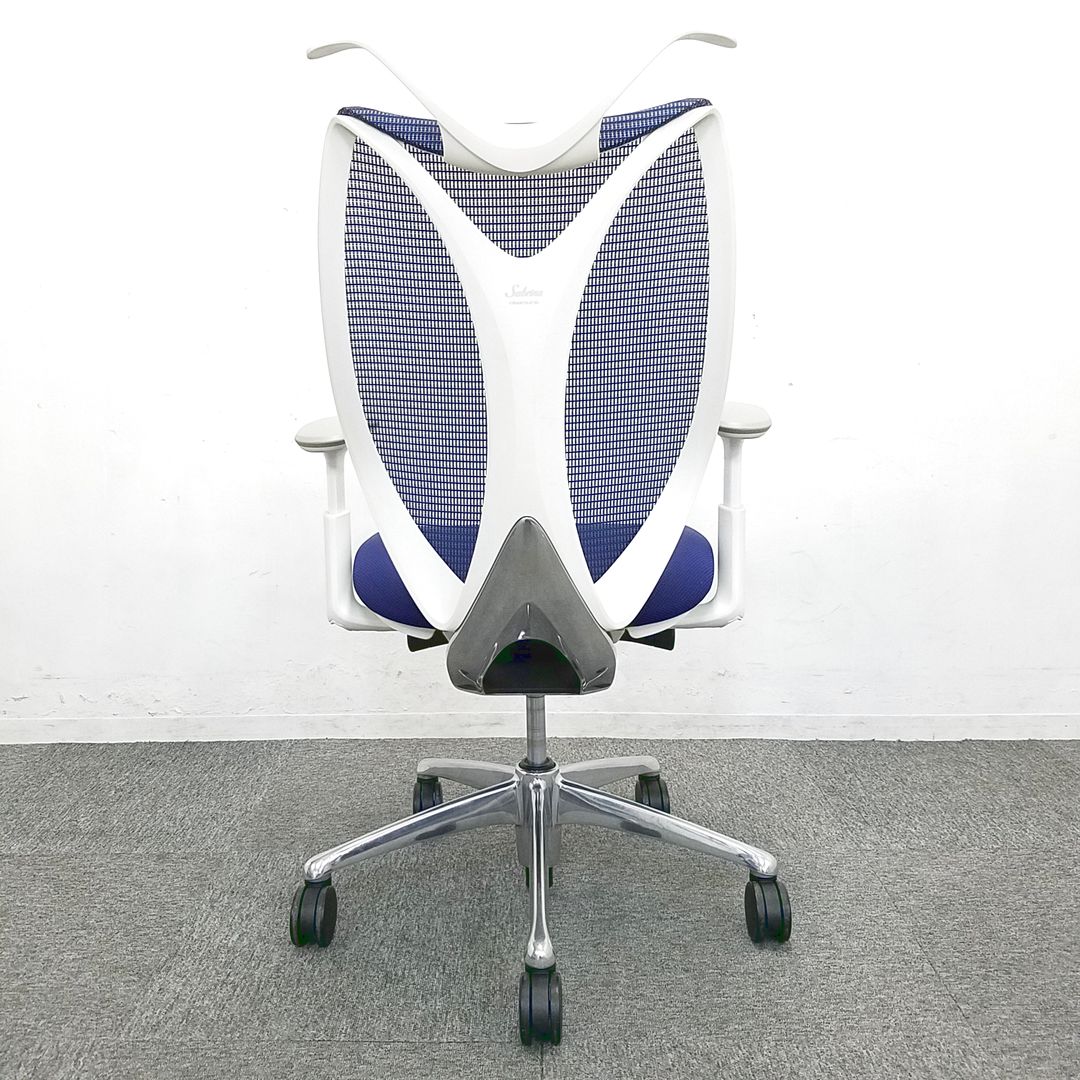 【前傾チルト付!流れるような美しいフォルムの最高級メッシュチェア!】■オカムラ(okamura)製 Sabrina(サブリナ) ハイバック 肘付き ■可動肘 ■背面メッシュ:アクアブルー 座面:ブルー ホワイトフレーム