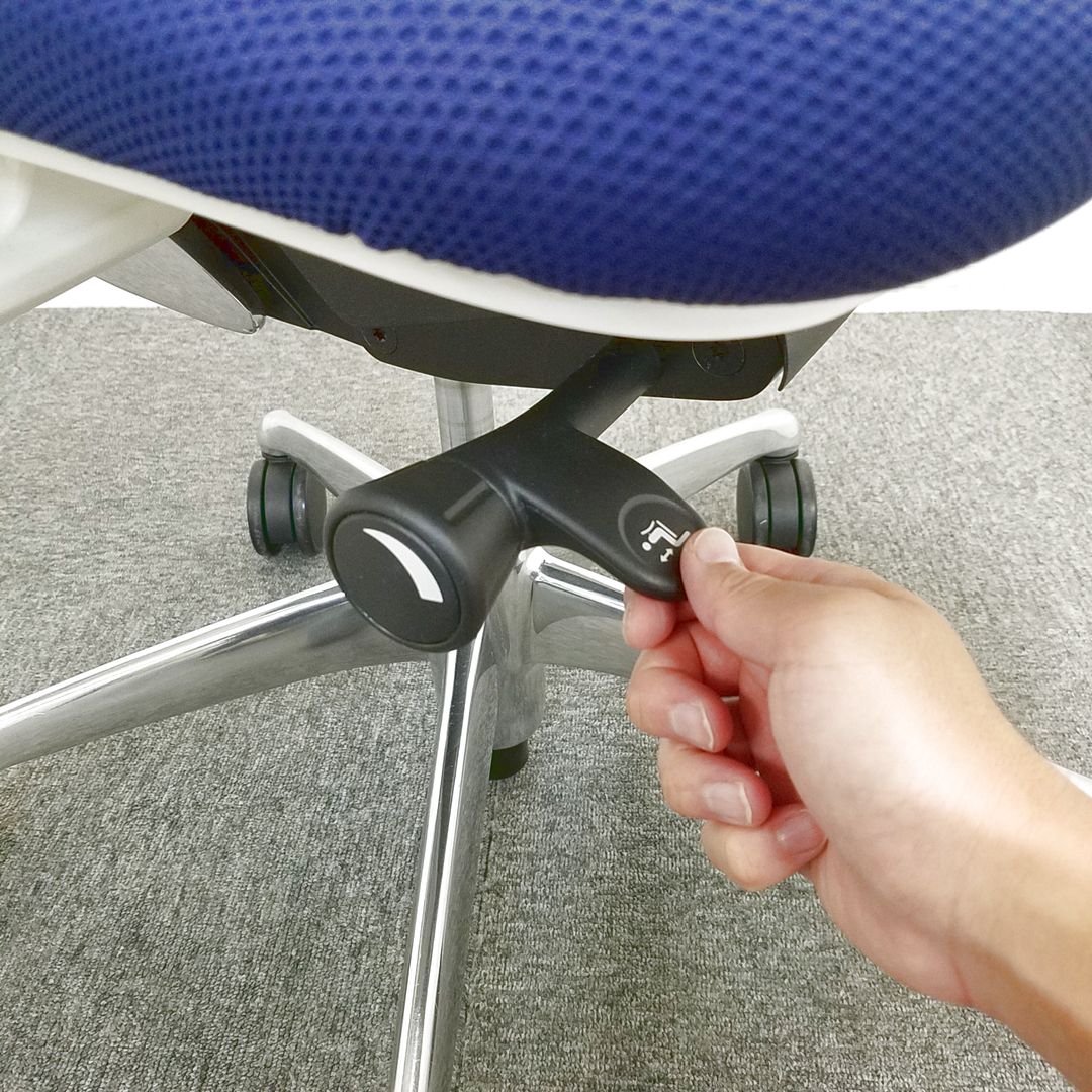 - 座面右下のレバーをスライドさせる「クイックスライドオペレーション」で、リクライニング反力を調整できます。強さの状態が視覚的にわかるため、直感的に操作がおこなえます。