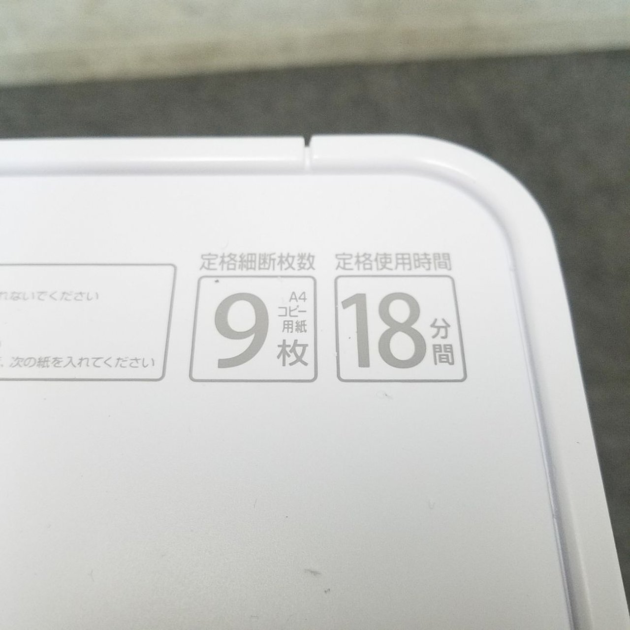 ・定格細断枚数:9枚(A4コピー用紙 50/60Hz)