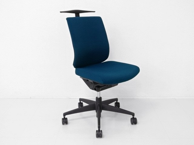 コクヨ ウィザード2 ローバック ロングセラーシリーズ プルシアンブルー×ブラックフレーム 肘無しモデル 定番の使いやすいチェア