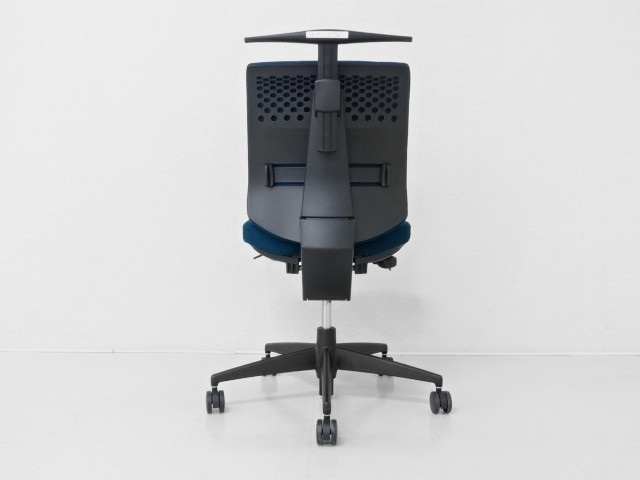コクヨ ウィザード2 ローバック プルシアンブルー×ブラックフレーム 肘無しモデル コートハンガー付き 定番の使いやすいチェア オフィスバスターズ梅田本店