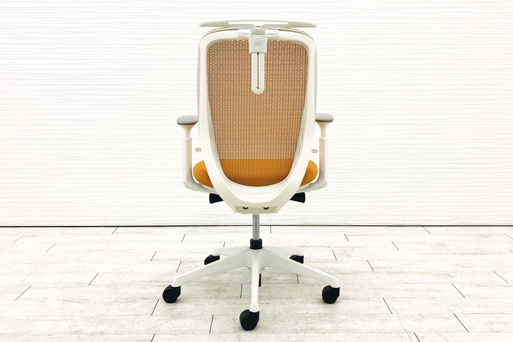 【在庫入替セール品!】【背のカーブを変えられる新感覚のオフィスシーティング!】■オカムラ シルフィーチェア 可動肘付 オレンジ ハンガー付 ホワイトフレーム ■新感覚のオフィスシーティング!【Okamrua Sylphy】