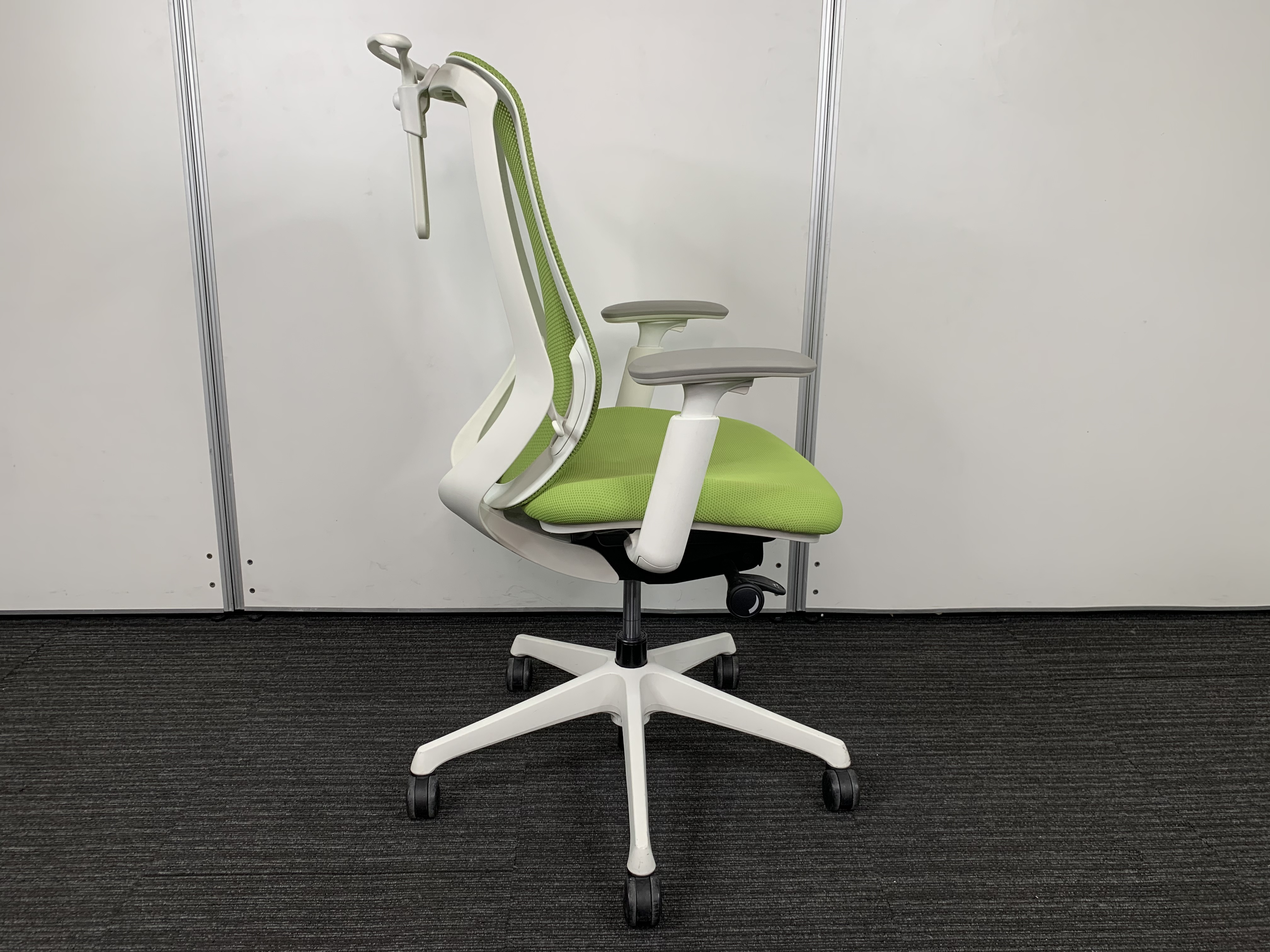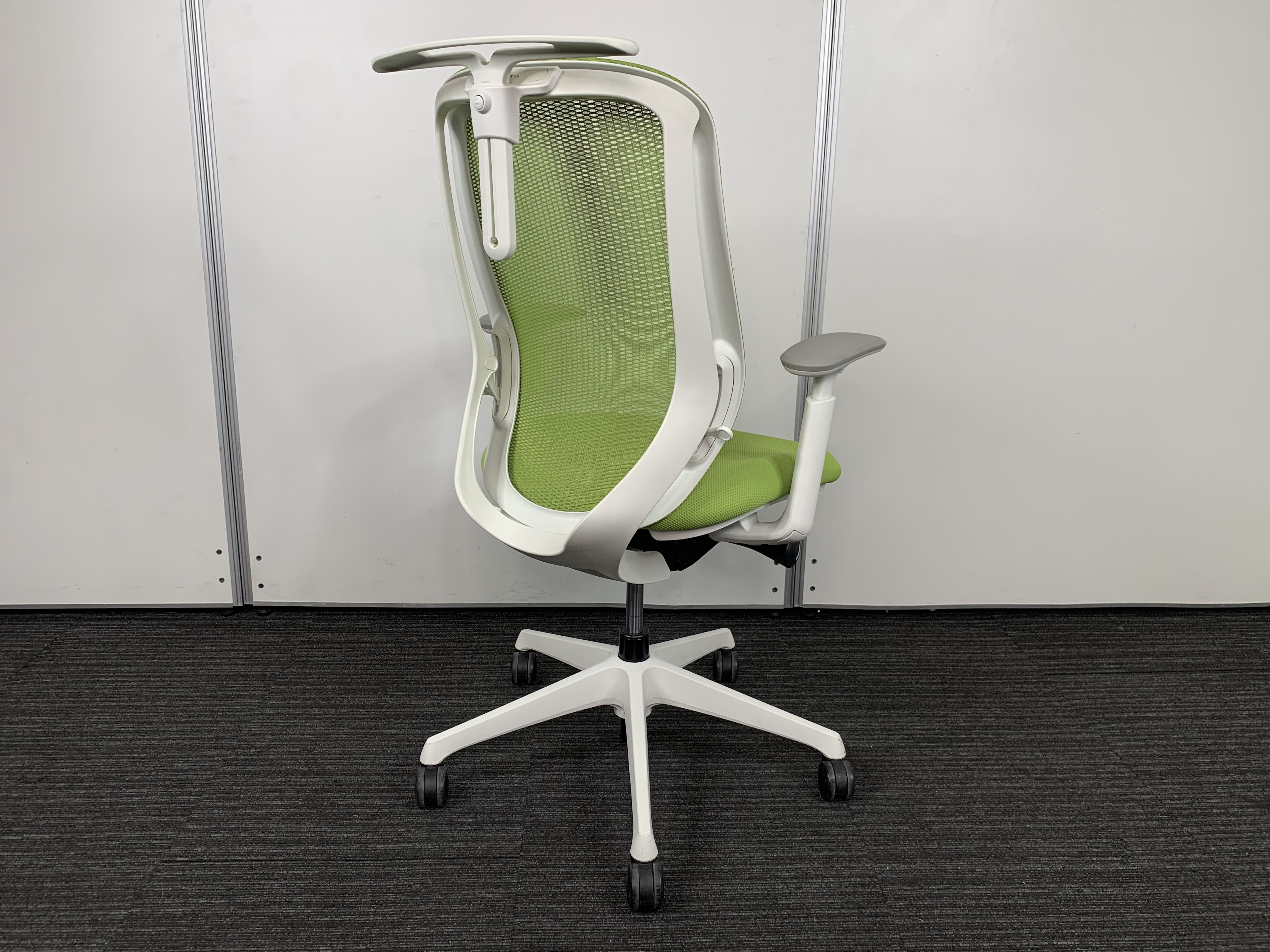 【前傾チルト機能付き】オカムラ製品で最も人気を集める高機能メッシュチェア!/オススメ(おすすめ) /人気商品【弊社使用欄:A01036032】■肘付き ハイバック 背面メッシュ ■可動肘 ■ライムグリーン×ホワイトシェル/オカムラ(okamura)製 シルフィ(Sylphy)