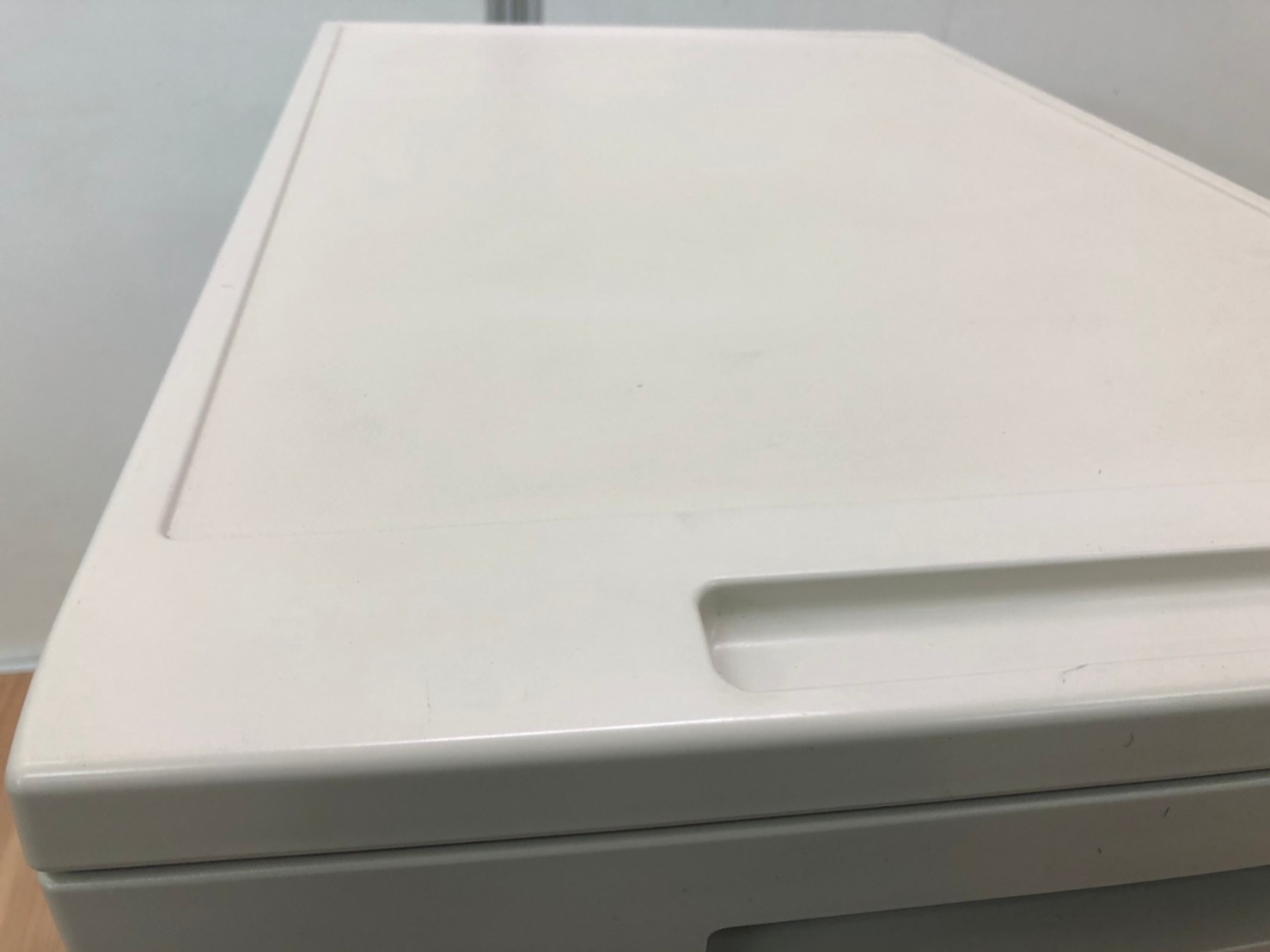 - あり黄ばみ・変色が広い範囲にうっすらある、または濃い黄ばみ・変色が一部ある。(例、天板、正面、背後、サイド部分にある。)