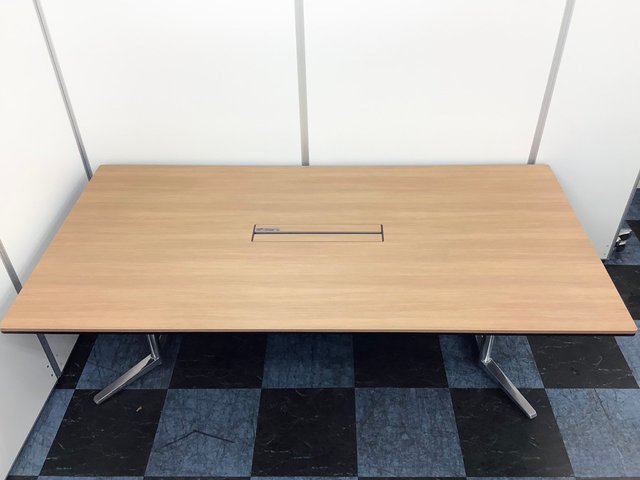 【KS】【ワンランク上のカンファレンス空間を演出!】■オカムラ製 会議用テーブル W2400mm 配線ボックス付 ■ラティオ2シリーズ ネオウッドライト- 茨城南店