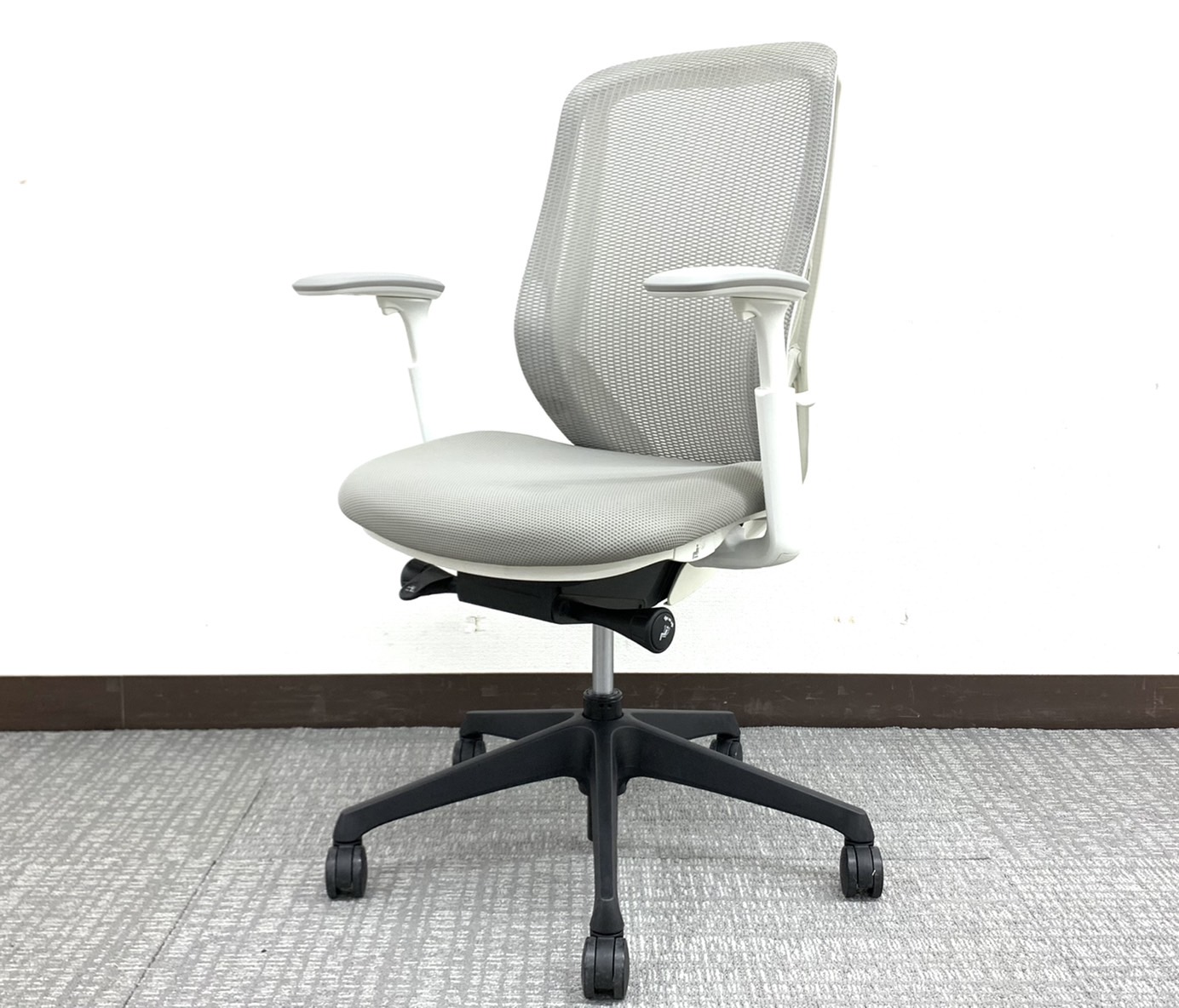 【2015年製】【状態要考慮】前傾機能バッチリ!グレー&ホワイトフレームシルフィー(Sylphy)※肘掛け新品ブラック脚仕様◆オカムラ製【RP】サーキュラーバリューCO2削減量の算出について
