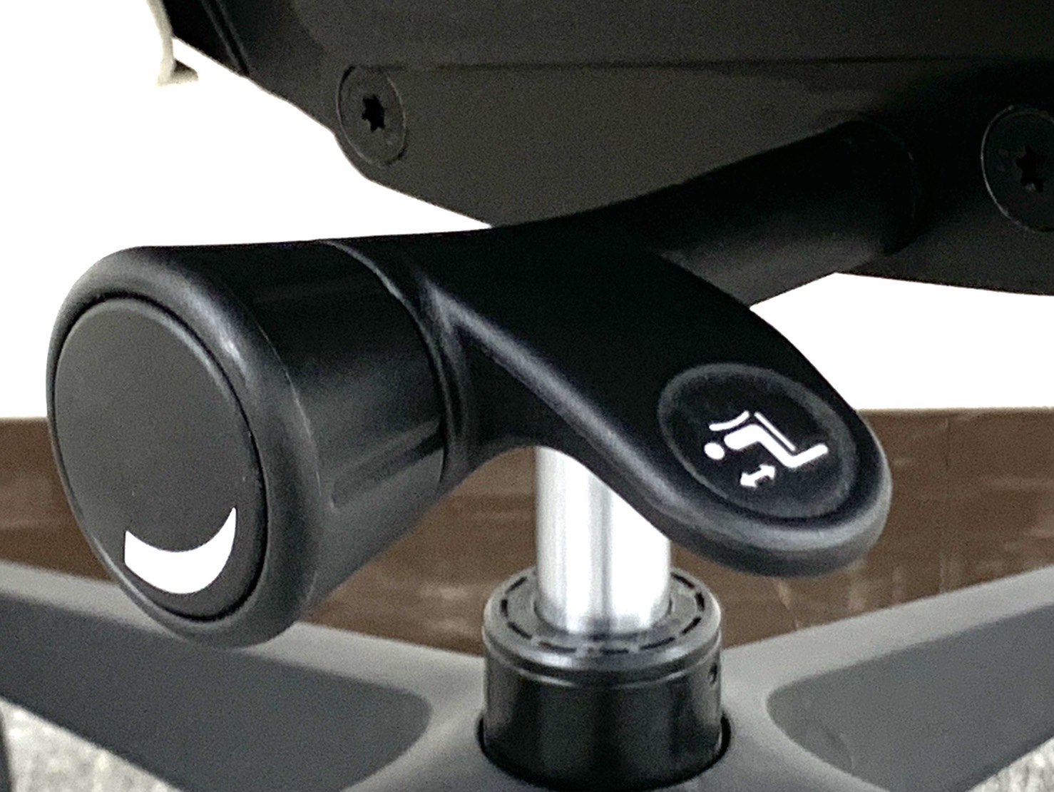 - 座面右下のダイヤル操作で、リクライニングの強弱調整が行えます。これまでのダイヤル式よりも、少ない回転数で、最弱?最強の調整が可能です。