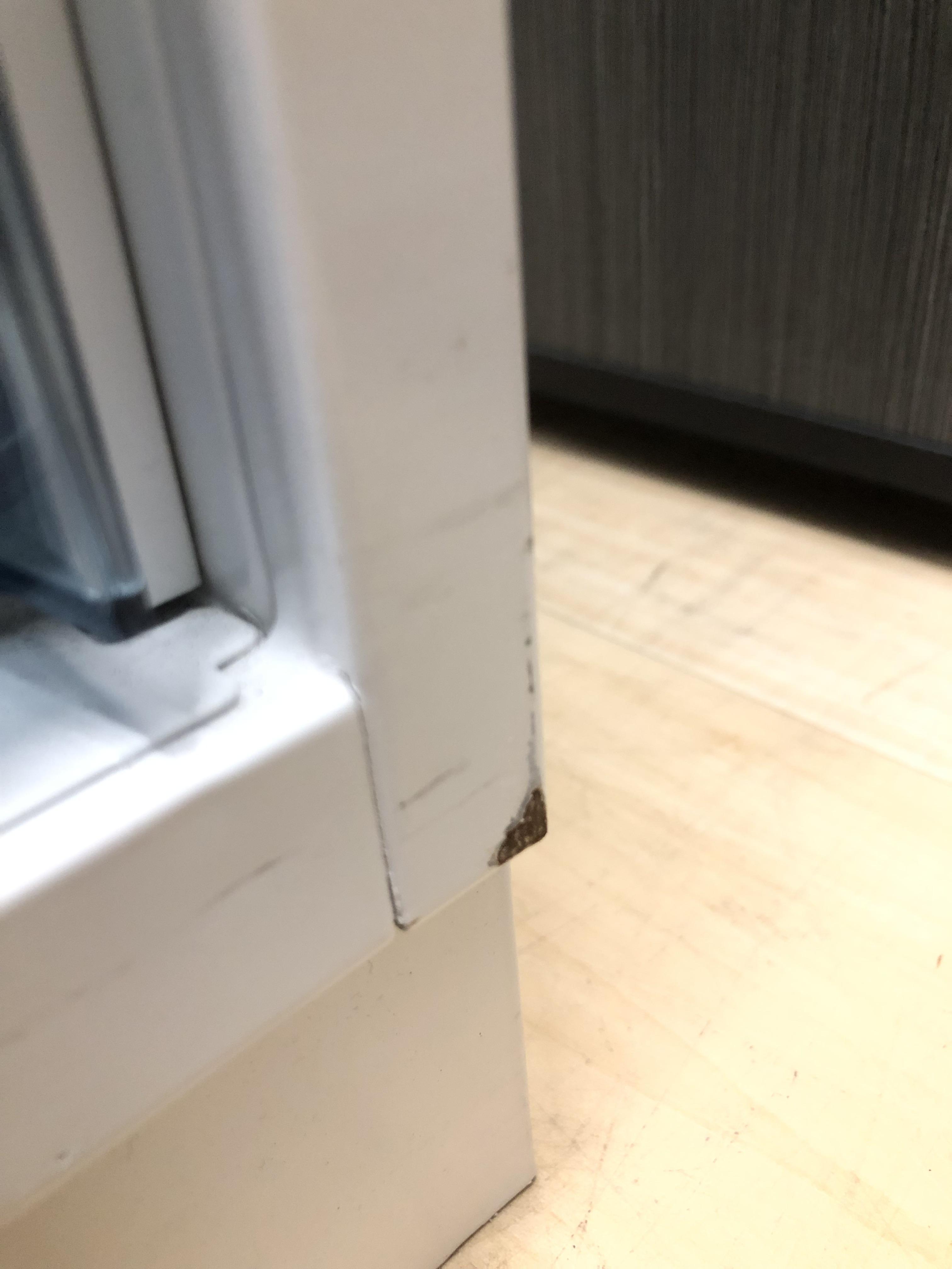 - あり黄ばみ・変色が広い範囲にうっすらある、または濃い黄ばみ・変色が一部ある。(例、天板、正面、背部、サイド部分にある。)