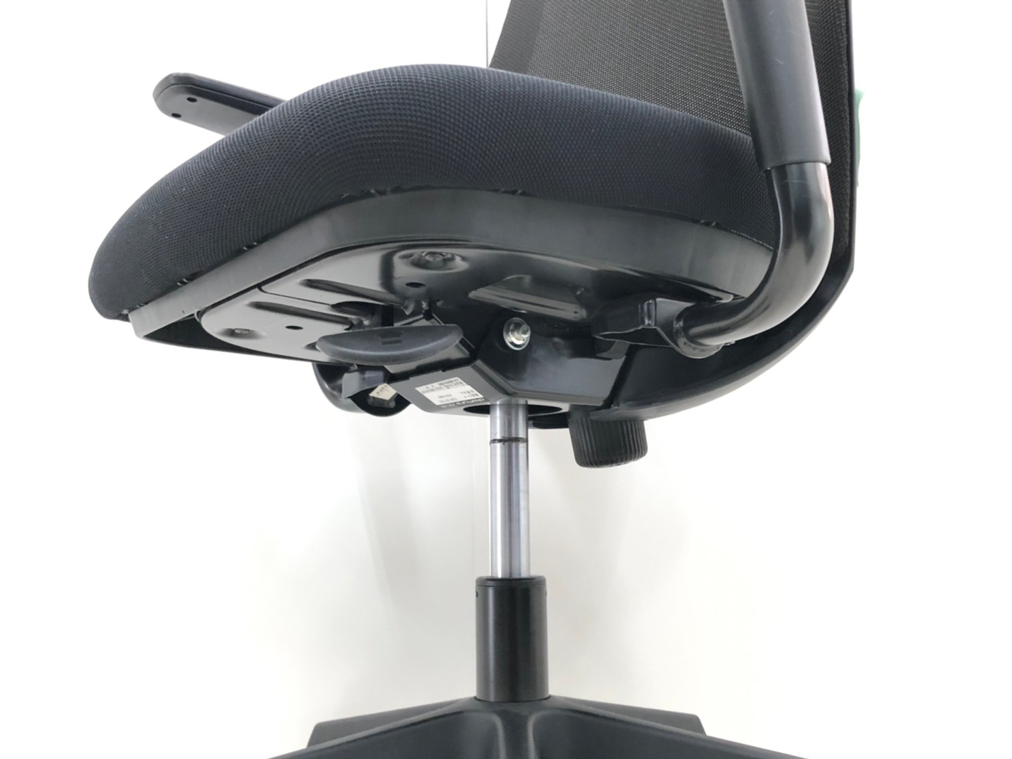 座り心地では、座面に高級チェアで使われている異硬度クッションが採用されており、快適です。硬異度クッションは、座面の後方は体重をしっかり支えるために硬め、前方は腿裏の血流を圧迫しないように柔らかめとなっており、長時間の着座を快適しサポートしてくれます。背もたれはS字になっていて背骨に沿ってくれるので、お客様からも「あれ、結構いいね〜。」と驚きのお声を頂くことが多いです。"