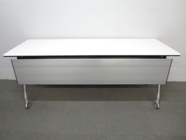 【スタイリッシュなデザイン!】■オカムラ製 サイドスタックテーブル W1800×D600mmタイプ ホワイト 幕板付き- 川崎店
