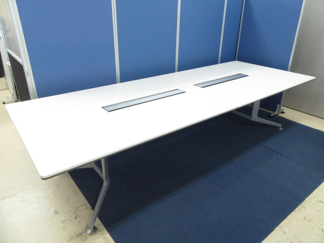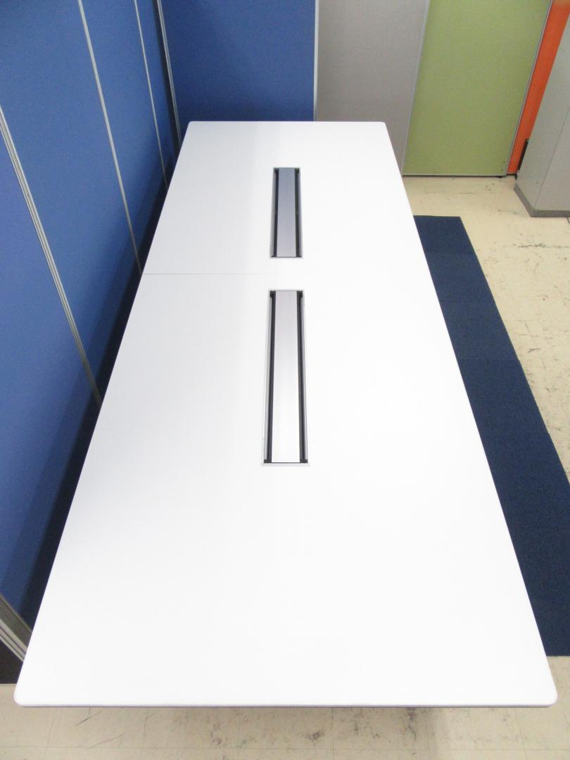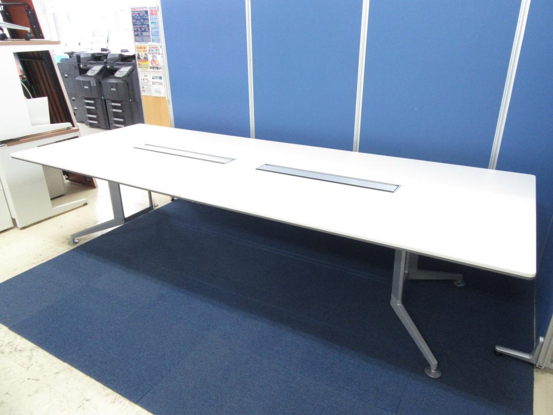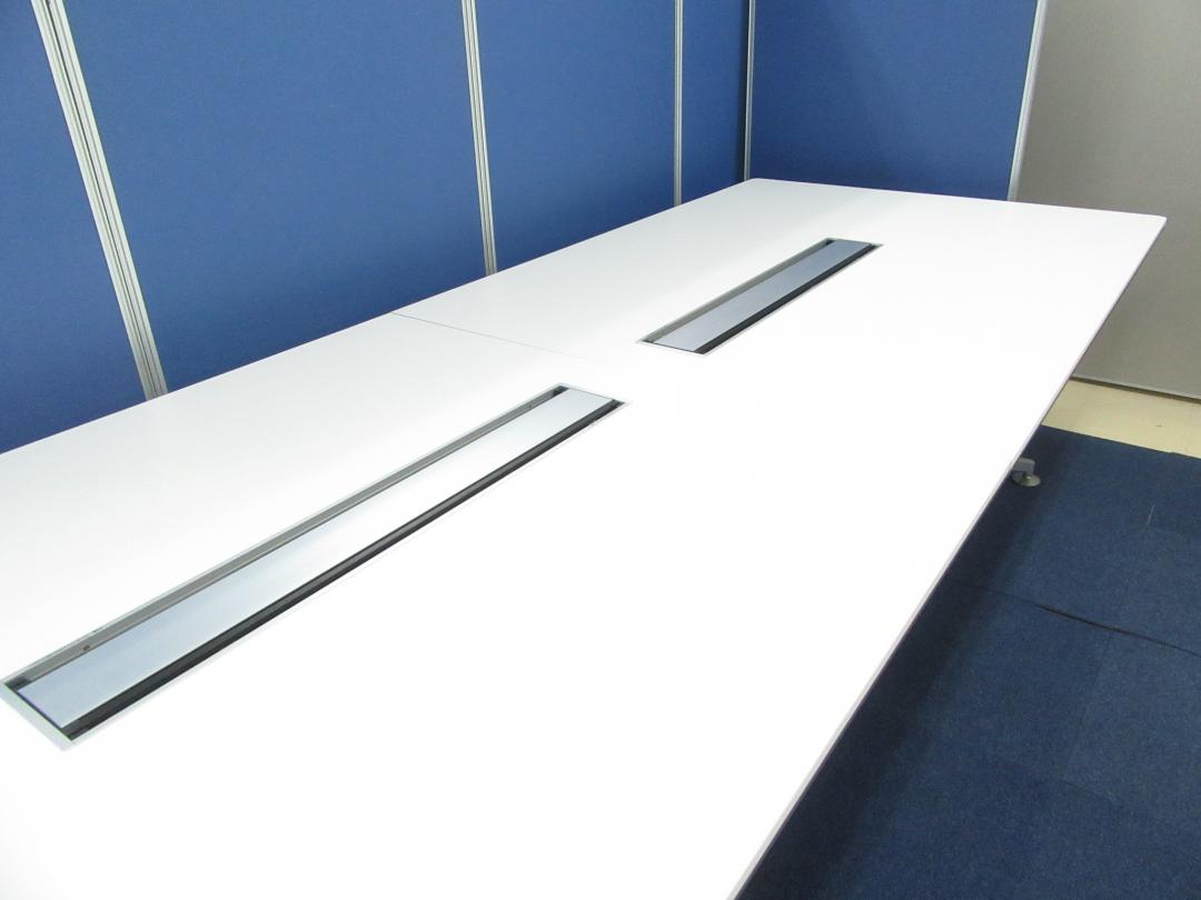 【KS】【スタイリッシュなデザイン!】■コクヨ製 会議用テーブル 配線ボックス付 W3200mm ホワイト ■オフィシャルな空間にもフィット!- 茨城南店