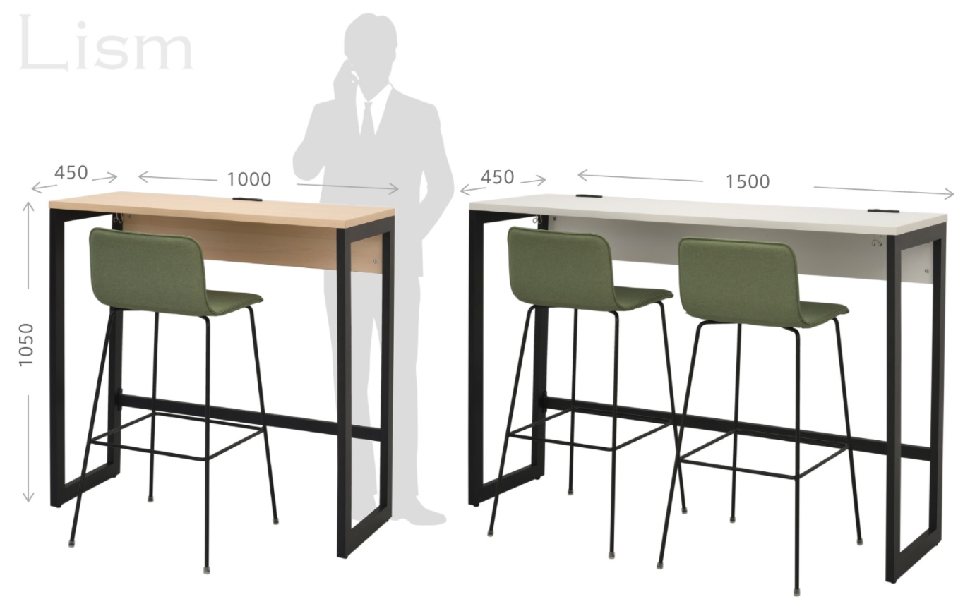 スタンディングまたはハイスツールでの使用に適した天板H1050mmです。