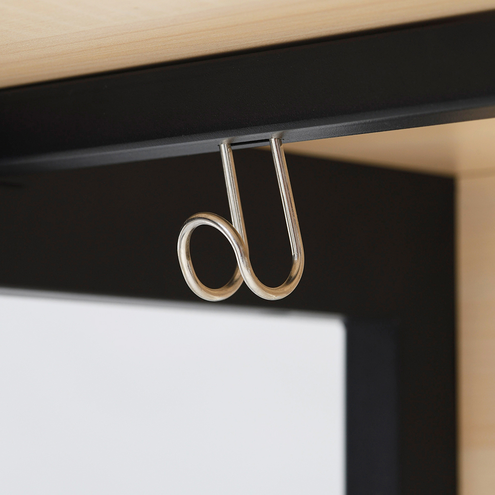 デスクサイドのお好み側に手荷物等を掛けられるフックが取り付け可能です。
