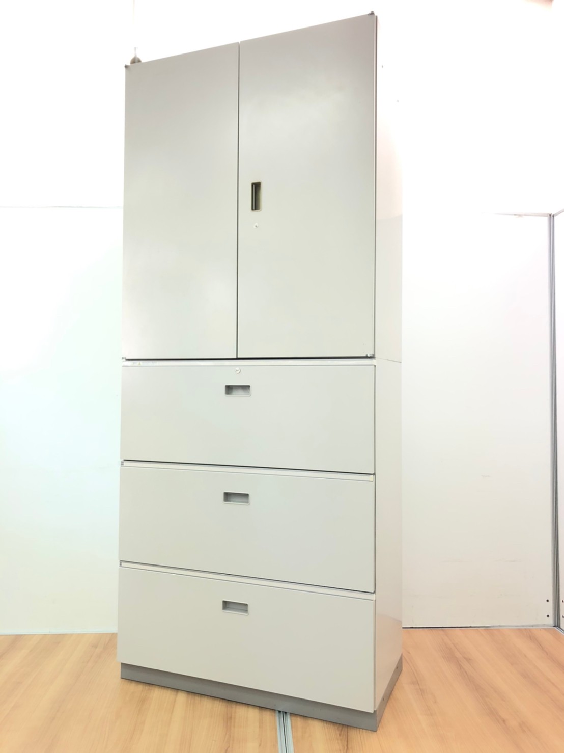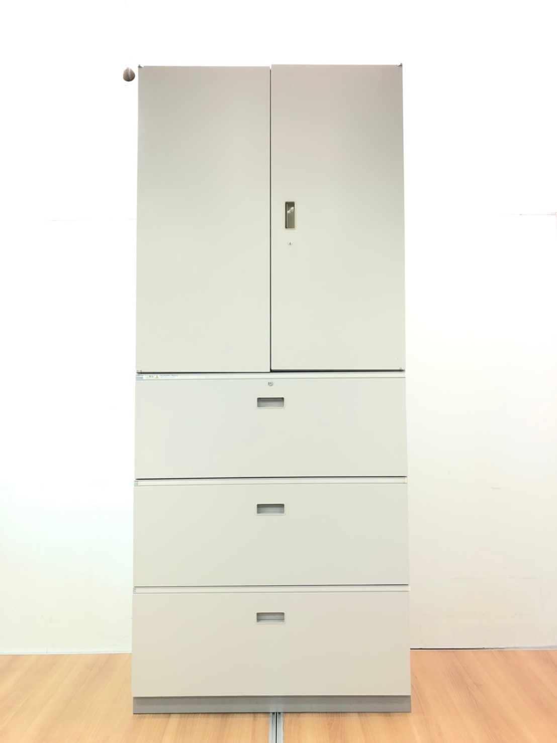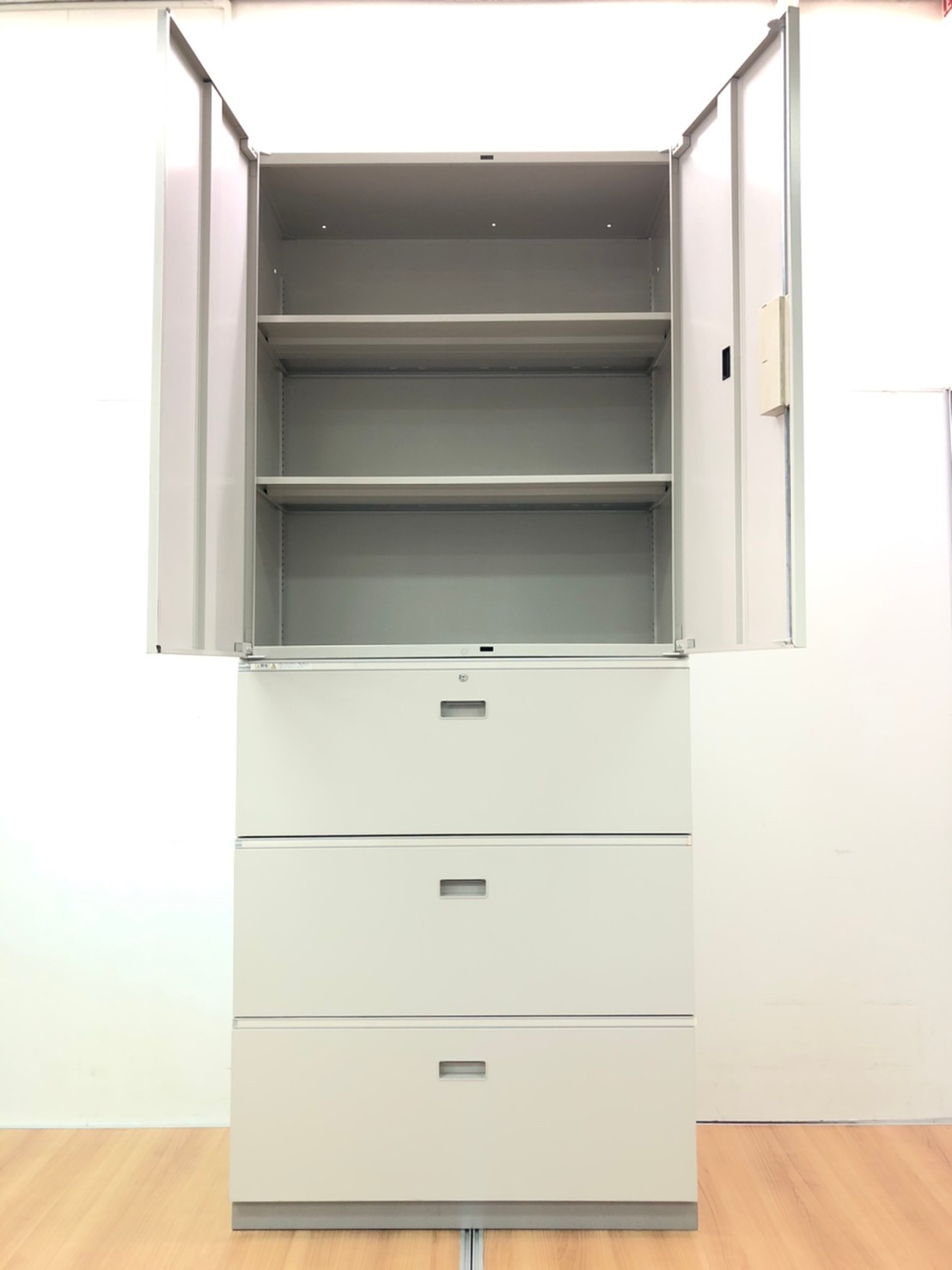 【倉庫在庫品】【これ1台で書類整理の問題が解決!上下で6段分の大容量収納!】■イトーキ (ITOKI)製 シンライン ハイキャビネット 両開き+3段ラテラル 書庫セット ■グレー ■シリンダー錠
