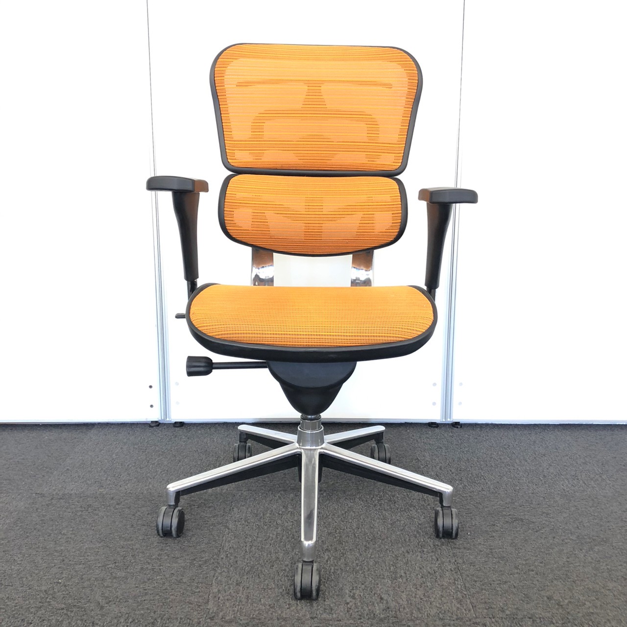 エルゴヒューマンチェア|関家具|オレンジ|座面・背面メッシュ|稼働肘|ハンガーオプション付き- 品川・三田店