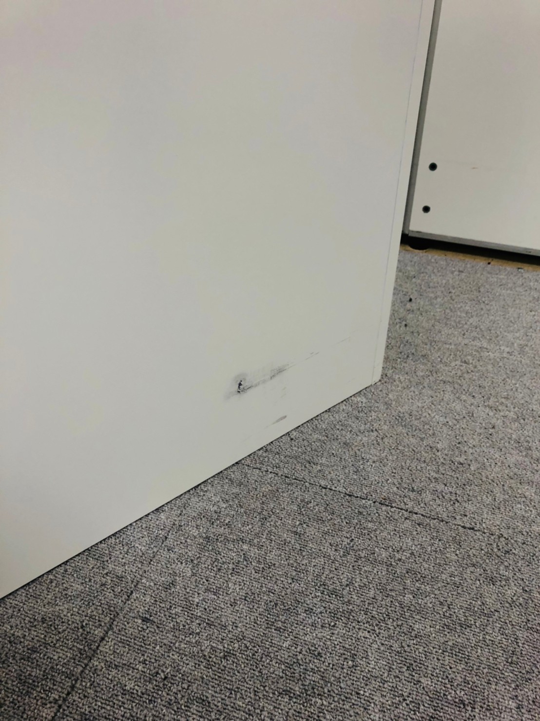 - 目立つ箇所あり傷・凹みが多数、深い傷・凹みが一部ある。(例、天板、正面、背部、サイド部分にある。)