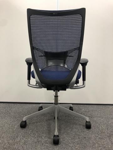 【オフィスの執務室、会議室におすすめ!】■オカムラ(okamura)製 バロン(Baron)チェア 肘付き ハイバック 背面メッシュ ■可動肘 ■ダークブルー × ホワイトシェル【硬めの座面が大人気!国産メッシュチェアの代表格!】【状態良好品!】