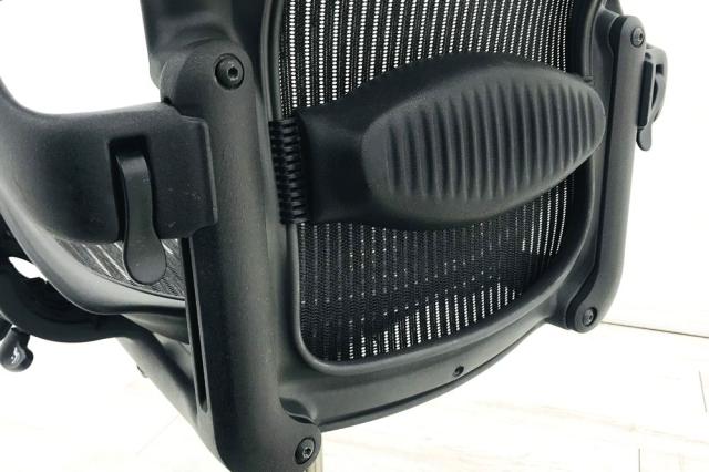 - 背もたれの裏にあるランバーサポート(パッド) の厚さは裏表で調節。上下の移動で、適切な高さ に調節できます。
