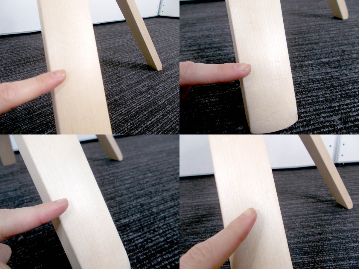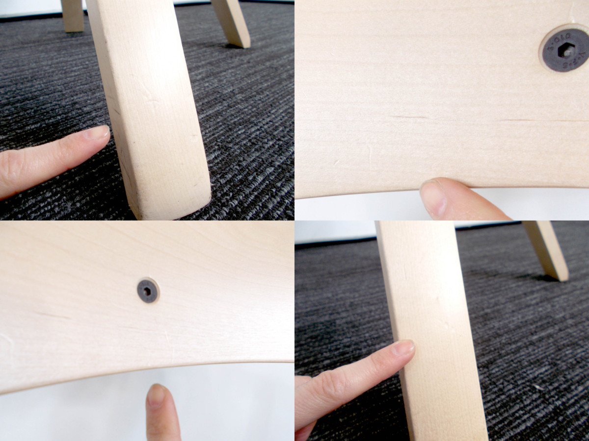- 目立つ箇所あり傷・破れ・ほつれ・へたり・しわが多数または深い傷・破れ・ほつれ・へたり・しわが一部ある。※座面・背もたれ、シェル、脚部等にある。