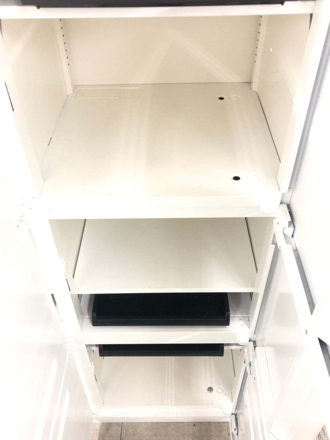 中には黒の受けが備え付けてあるため、書類がロッカーの中でバラバラになる心配もございません。