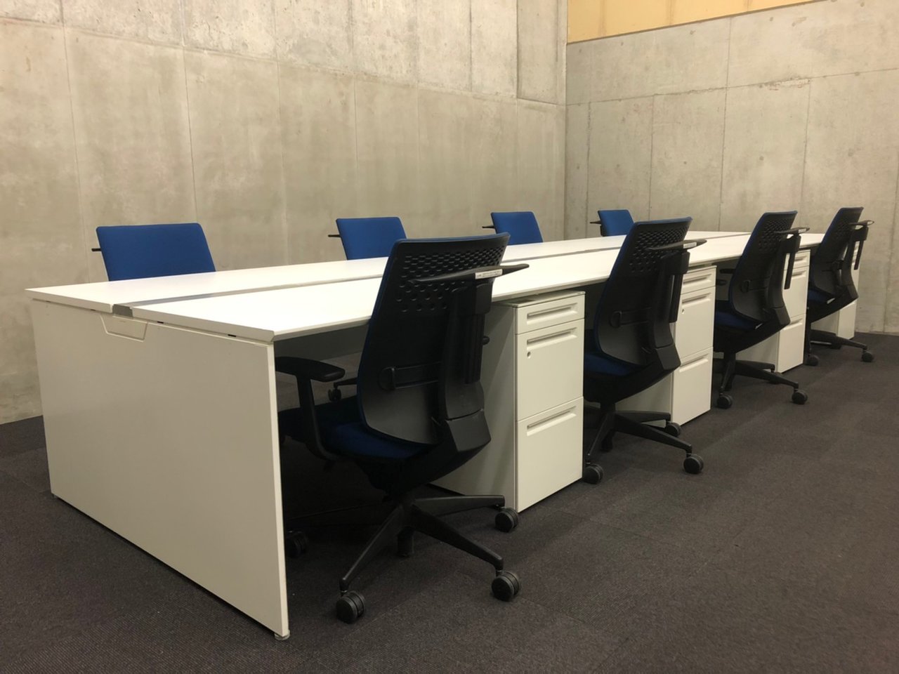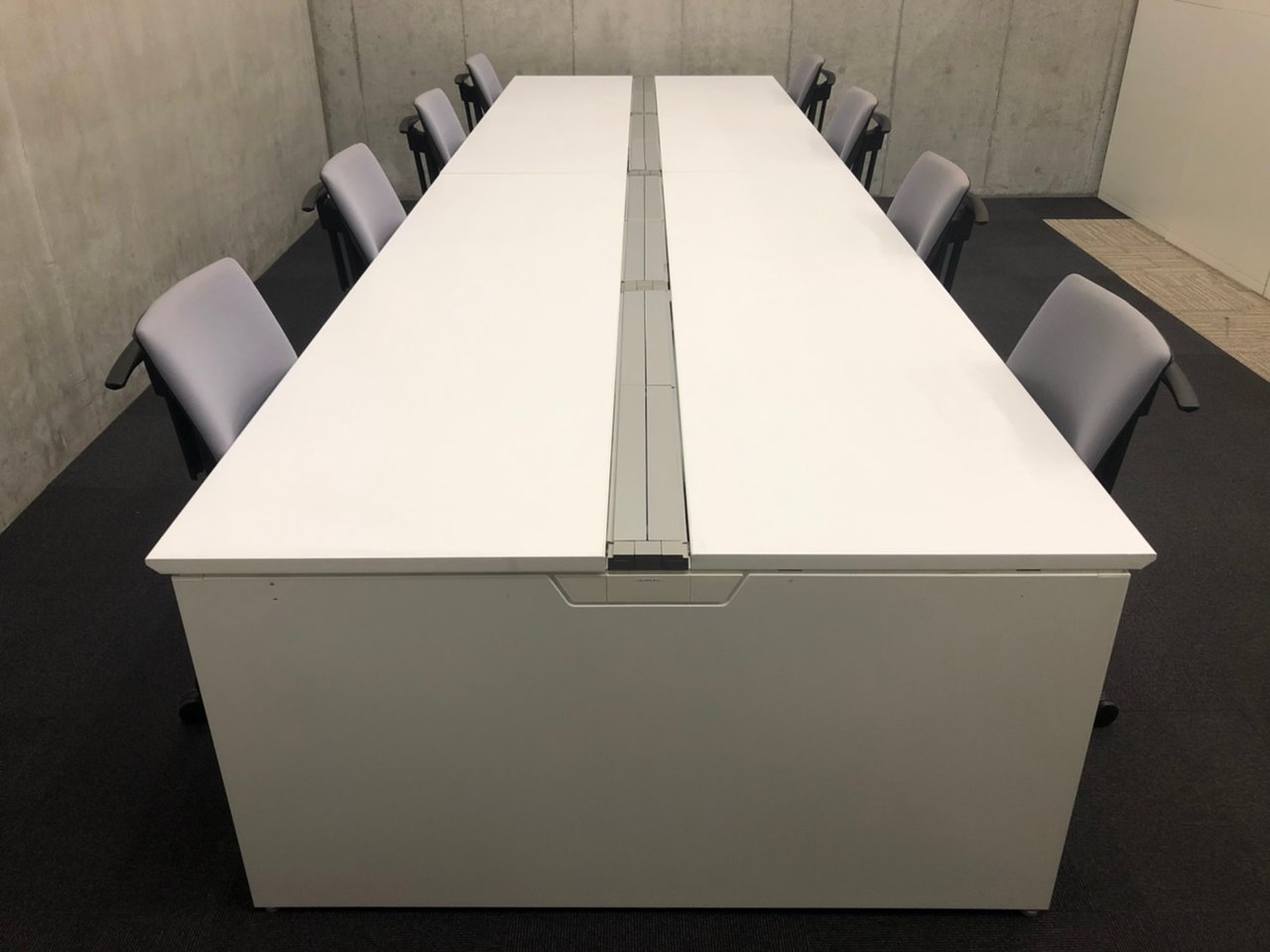 【見た目がおしゃれなフリーアドレスデスク】幅4800㎜ 奥行1400㎜ 高さ720㎜ オカムラ/プロユニットフリーウェイ/天板:ホワイト/脚:ホワイト 中古家具