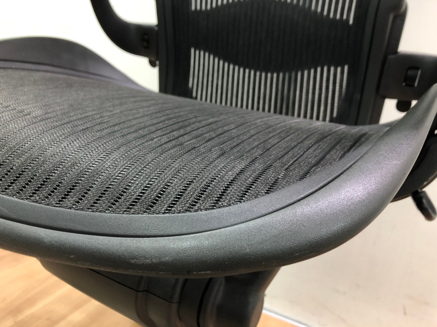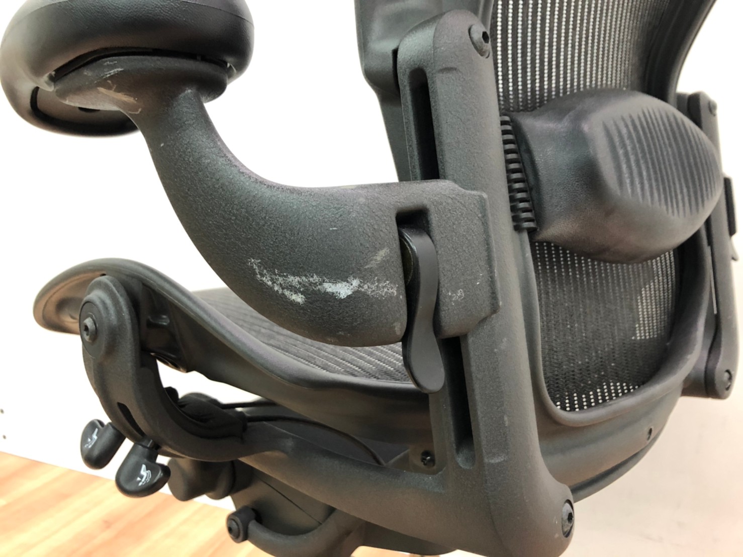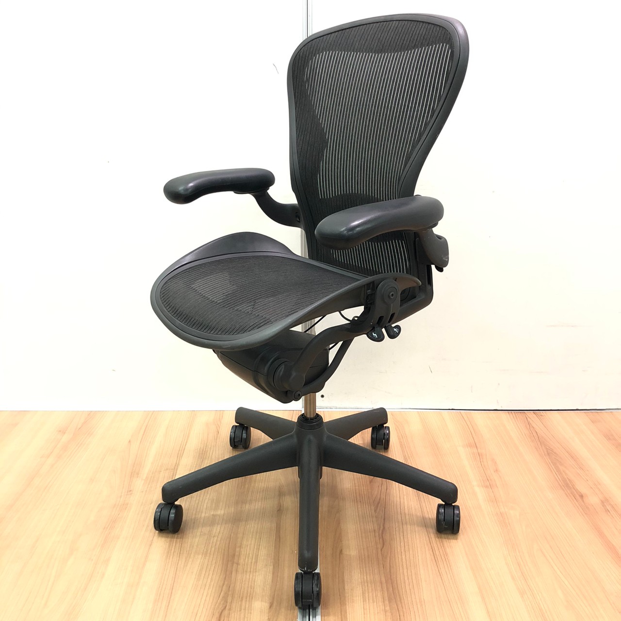 【★状態イマイチのためお安く!】■ハーマンミラー製 アーロンチェア Bサイズ 固定肘 ※キズあり・ランバーサポート無・昇降ガス圧弱めのためお安く!【訳あり特価品】
