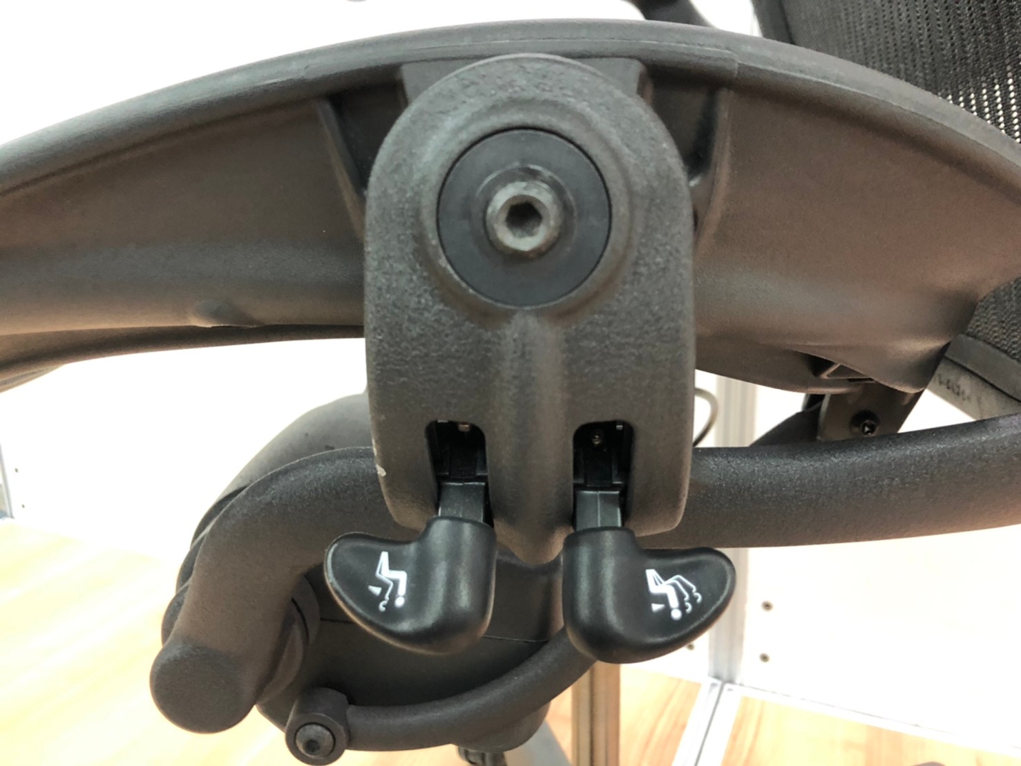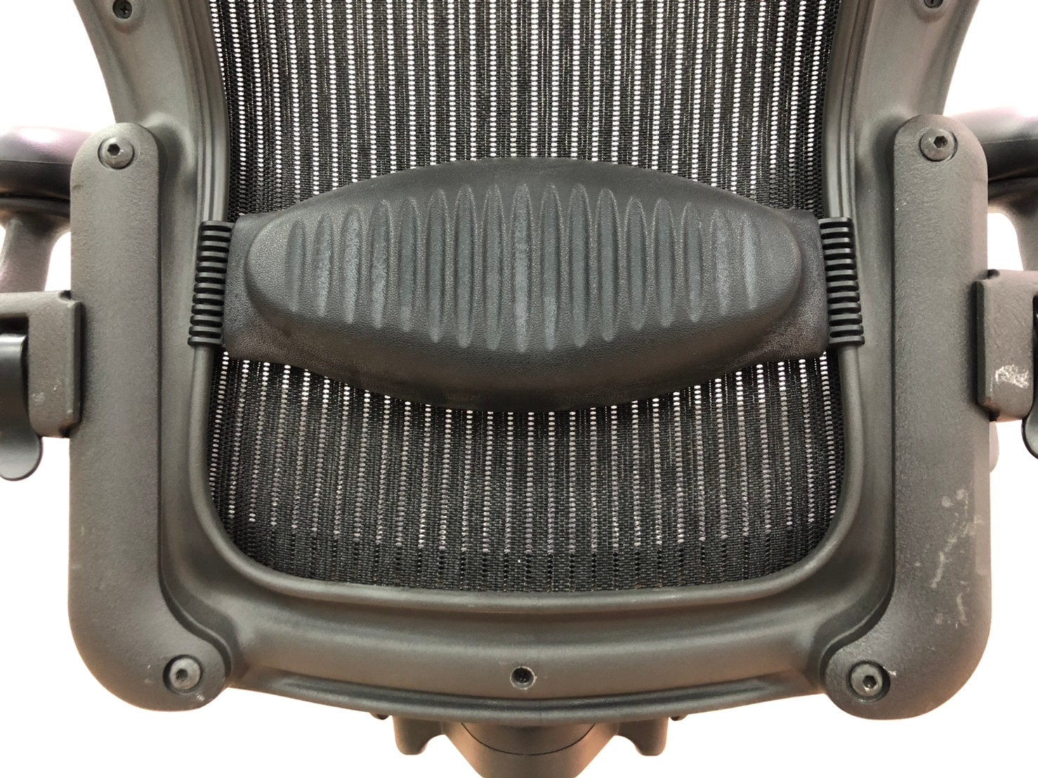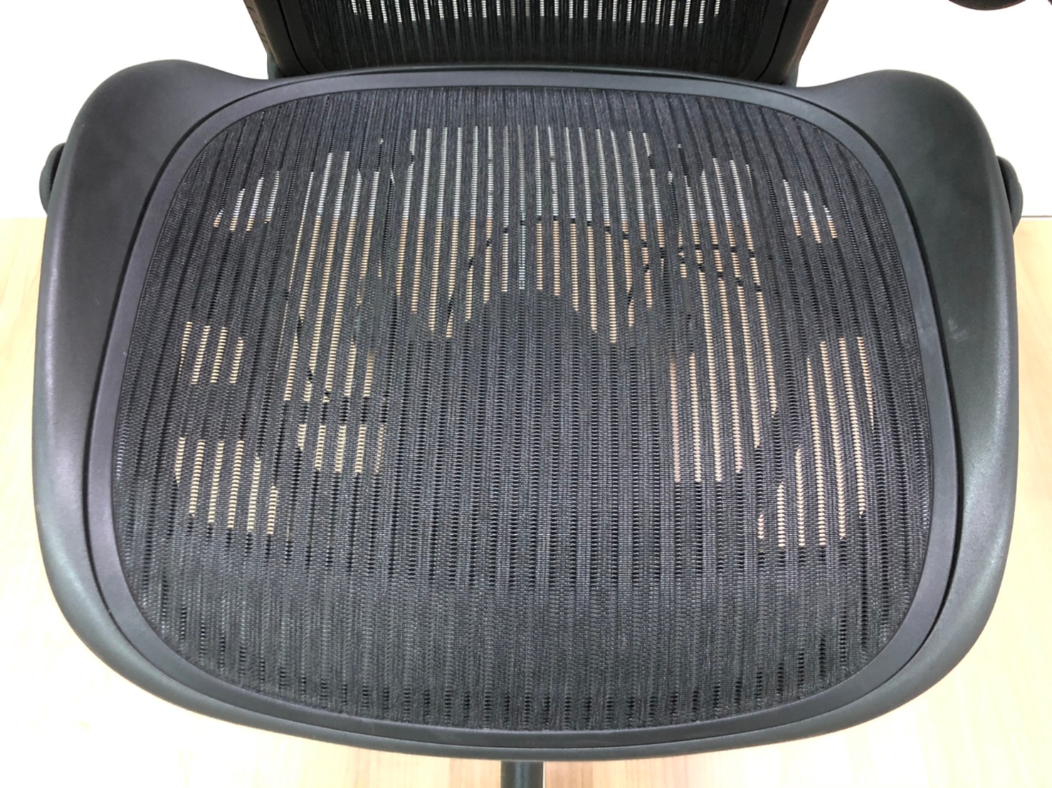 【★状態イマイチのためお安く!】■ハーマンミラー製 アーロンチェア Bサイズ 固定肘 ※キズあり・ランバーサポート無・昇降ガス圧弱めのためお安く!【訳あり特価品】
