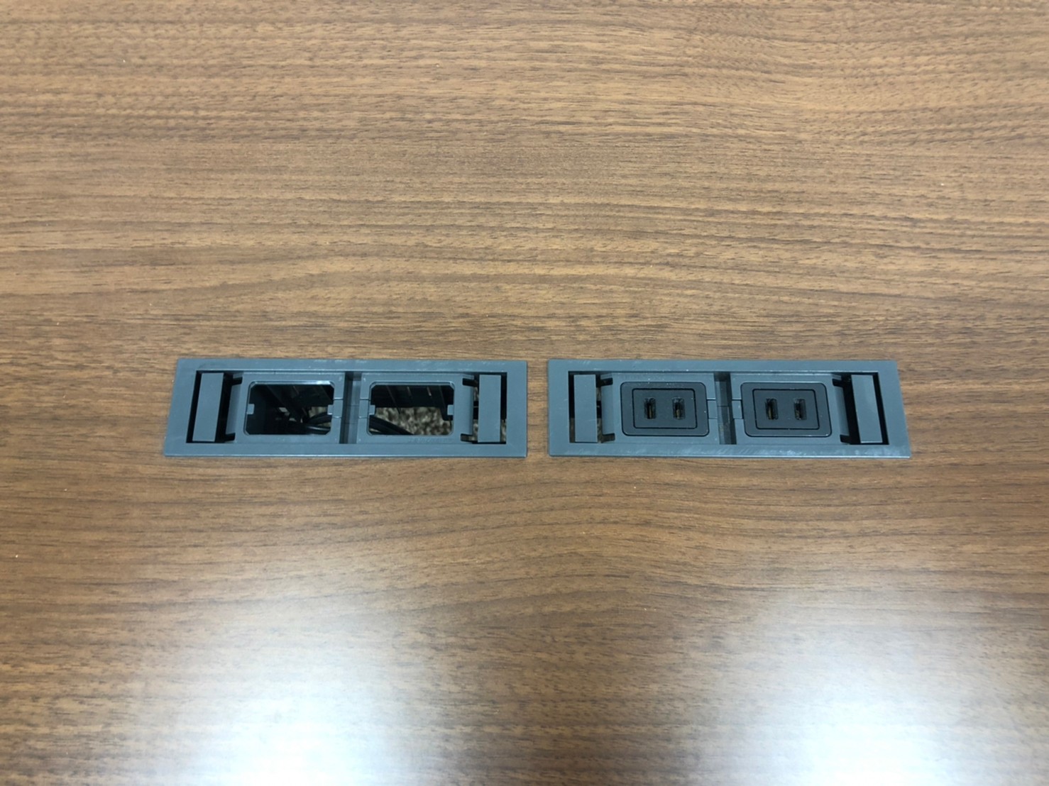 品薄なブラウンのテーブル!便利な配線カバー、コンセント付き!