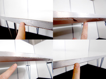 - 目立つ箇所あり傷・凹みが多数、深い傷・凹みが一部ある。(例、天板、幕板、棚板、サイド部分、脚部等にある。)