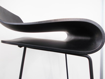 折りたたんだような曲線が美しいカウンタースツールです。後ろの隙間部分には雑誌などを置いてもオシャレかと思います。電気分野で絶縁体などに使われる、特殊なプラスチックを使用。シンプルで洗練されたデザインで、しなりや熱に強いしっかりとした作りになっています。