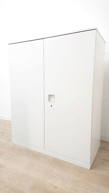 【オフィスの書類をスッキリ整理!取っ手がどの方向からでも開くマルチハンドルが人気!】■オカムラ(okamura)製 レクトラインシリーズ ローキャビネット 両開き書庫 H1250㎜ ■ホワイト ■シリンダー錠