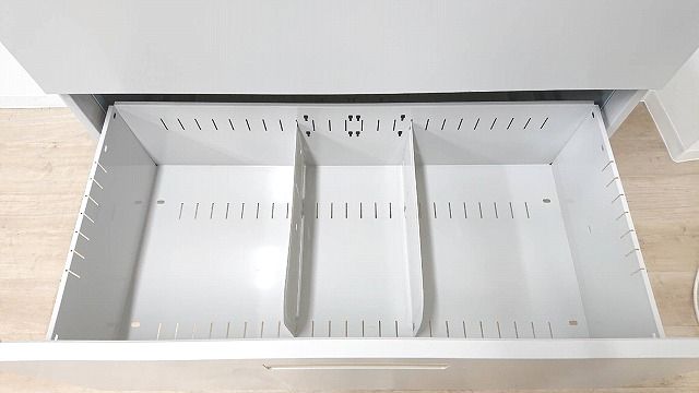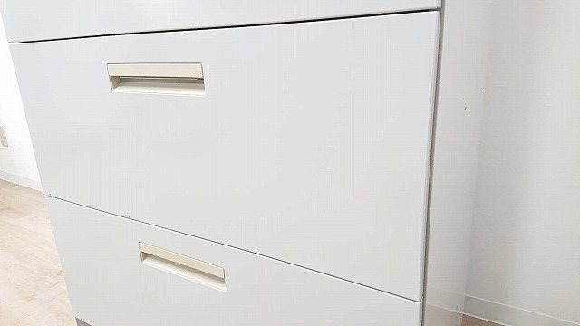 - 扉や引出しに、ラッチ機構を装備。地震時に勝手に扉や引出しが開き、収納物がユニットから飛び出すのを抑制します。