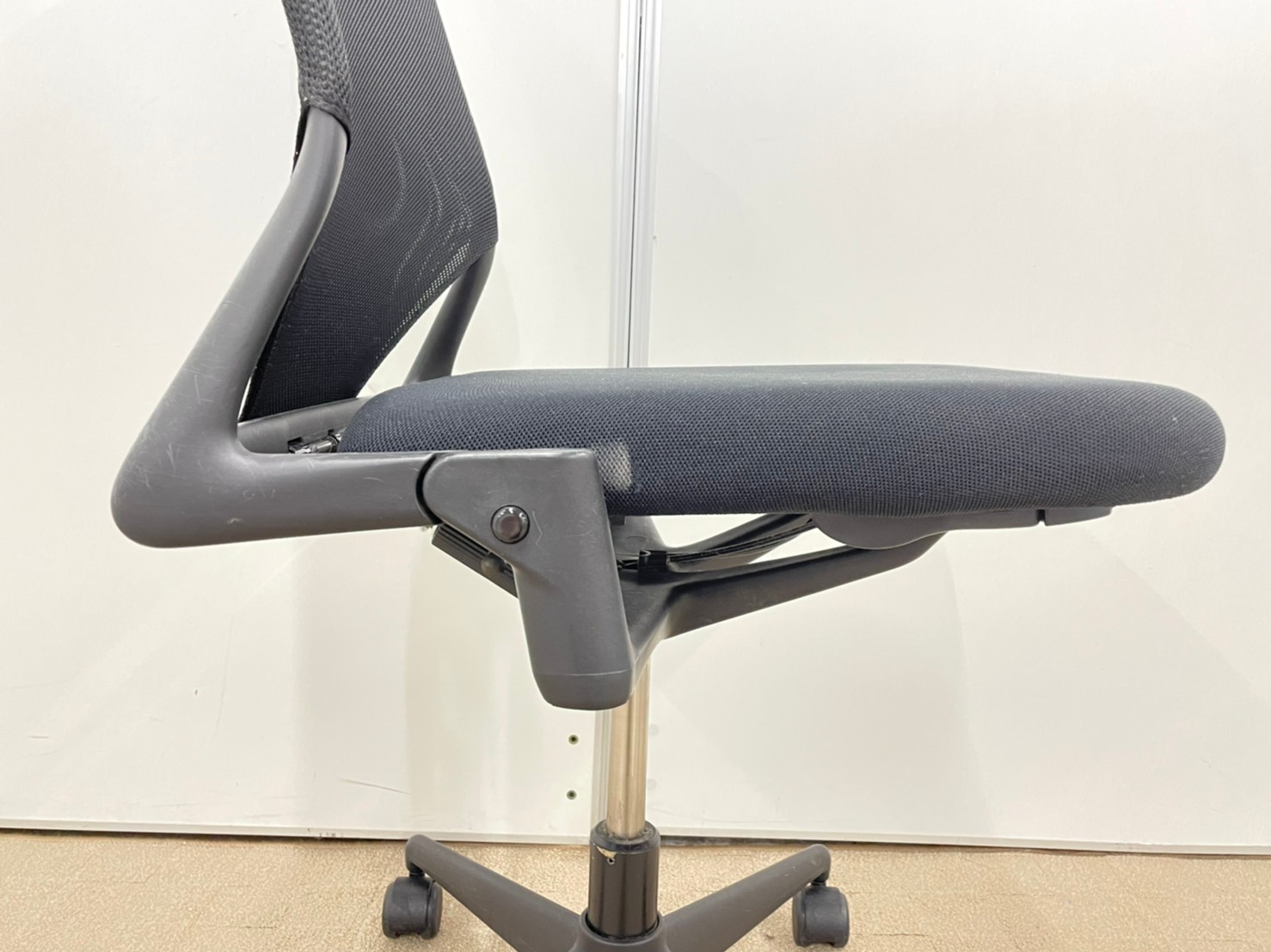 - 背もたれ部分はメッシュ素材です。デザイン的な人気、冷暖房の空調とも相性がよくメッシュは丈夫でたるみなど起こりづらい設計です。