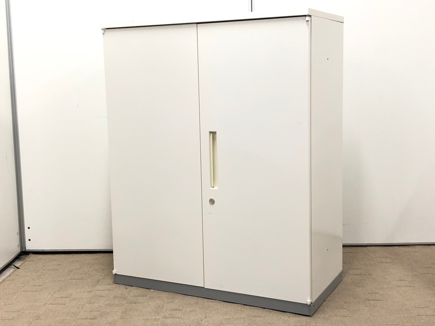 【訳アリ品】【オフィスの書類をスッキリ整理!】■イナバ製 TFシリーズ ローキャビネット 両開き書庫 H1100㎜ ■ホワイト ■シリンダー錠